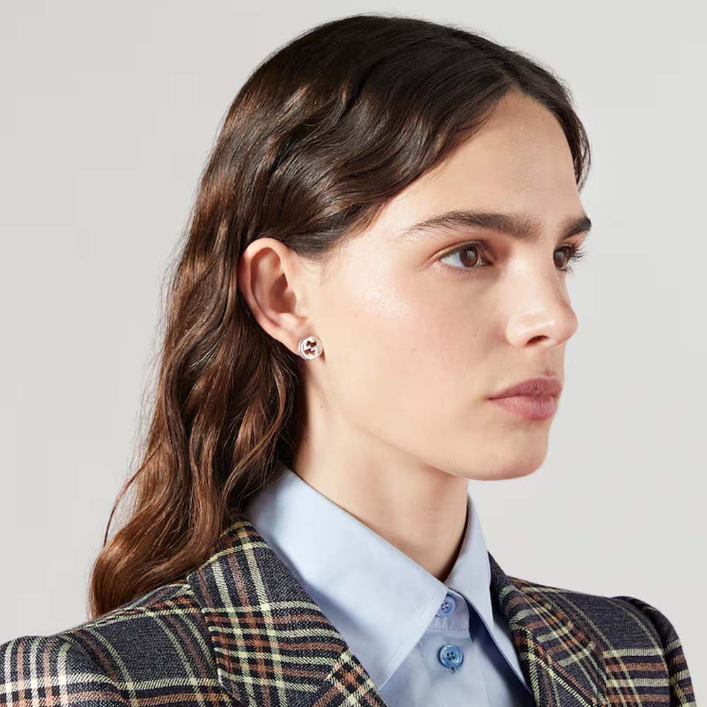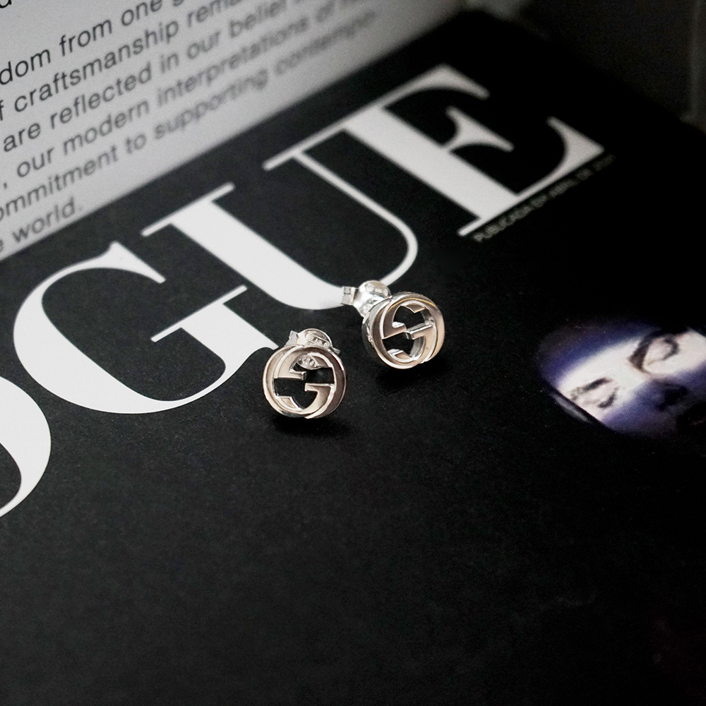 GUCCI INTERLOCKIN G 雙G拋光耳環 925銀 古馳