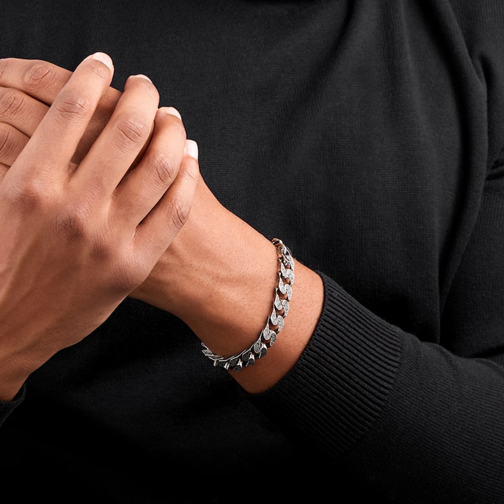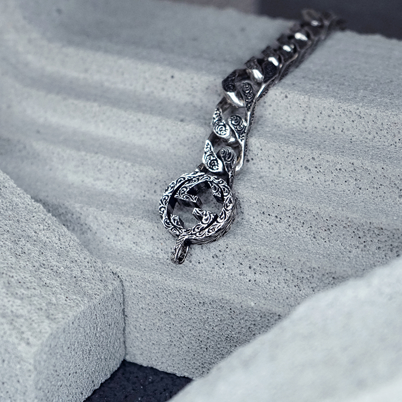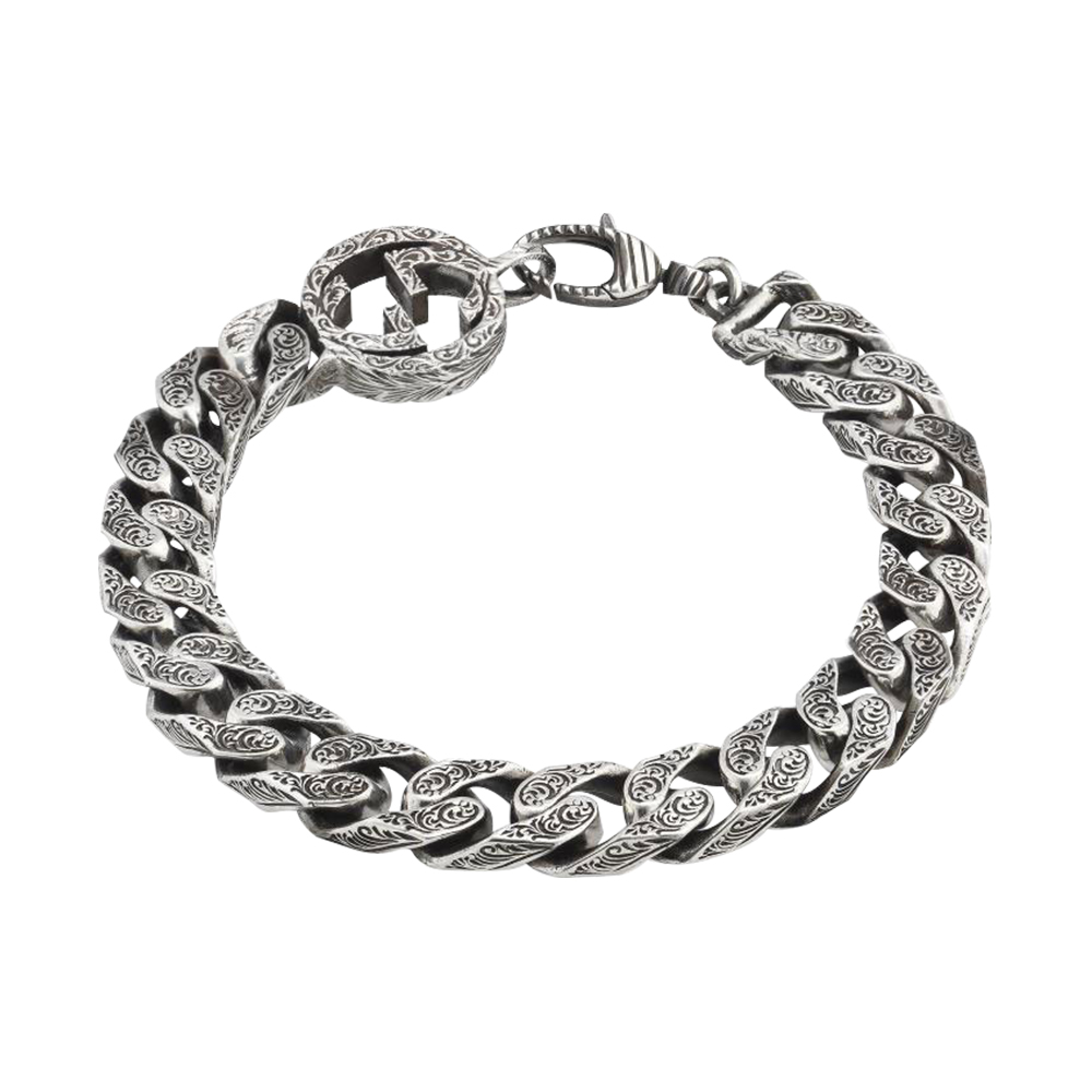 GUCCI INTERLOCKIN G 雙G復古刻紋古巴手鍊 925銀 古馳