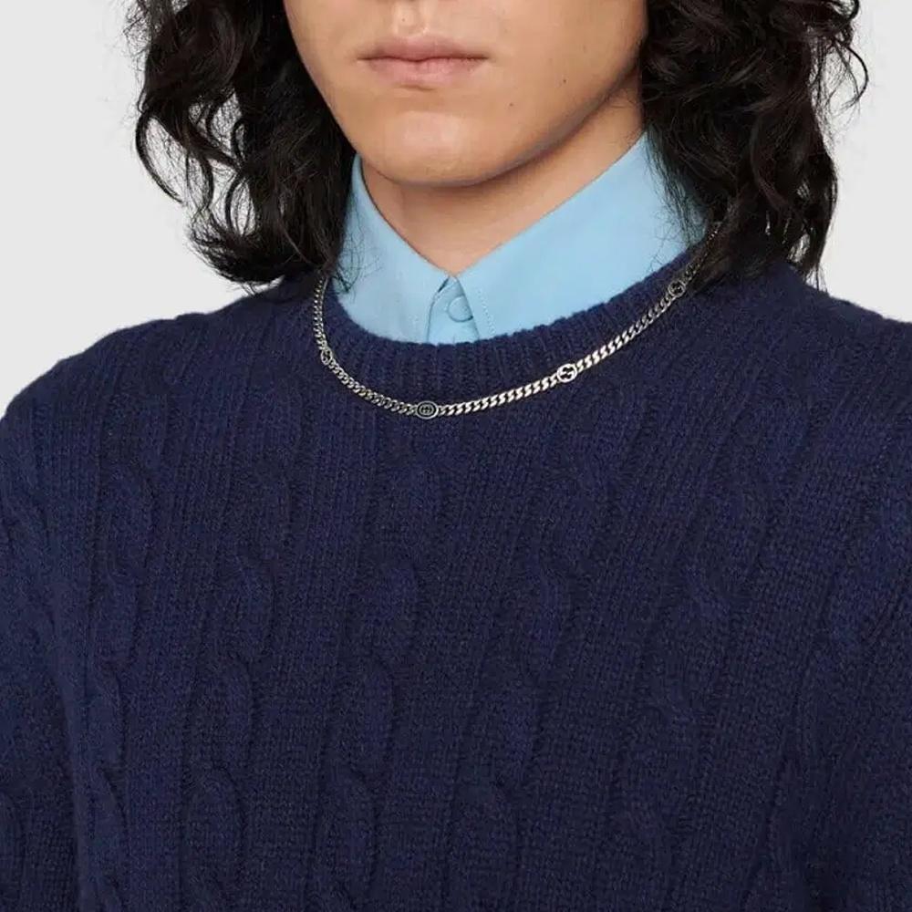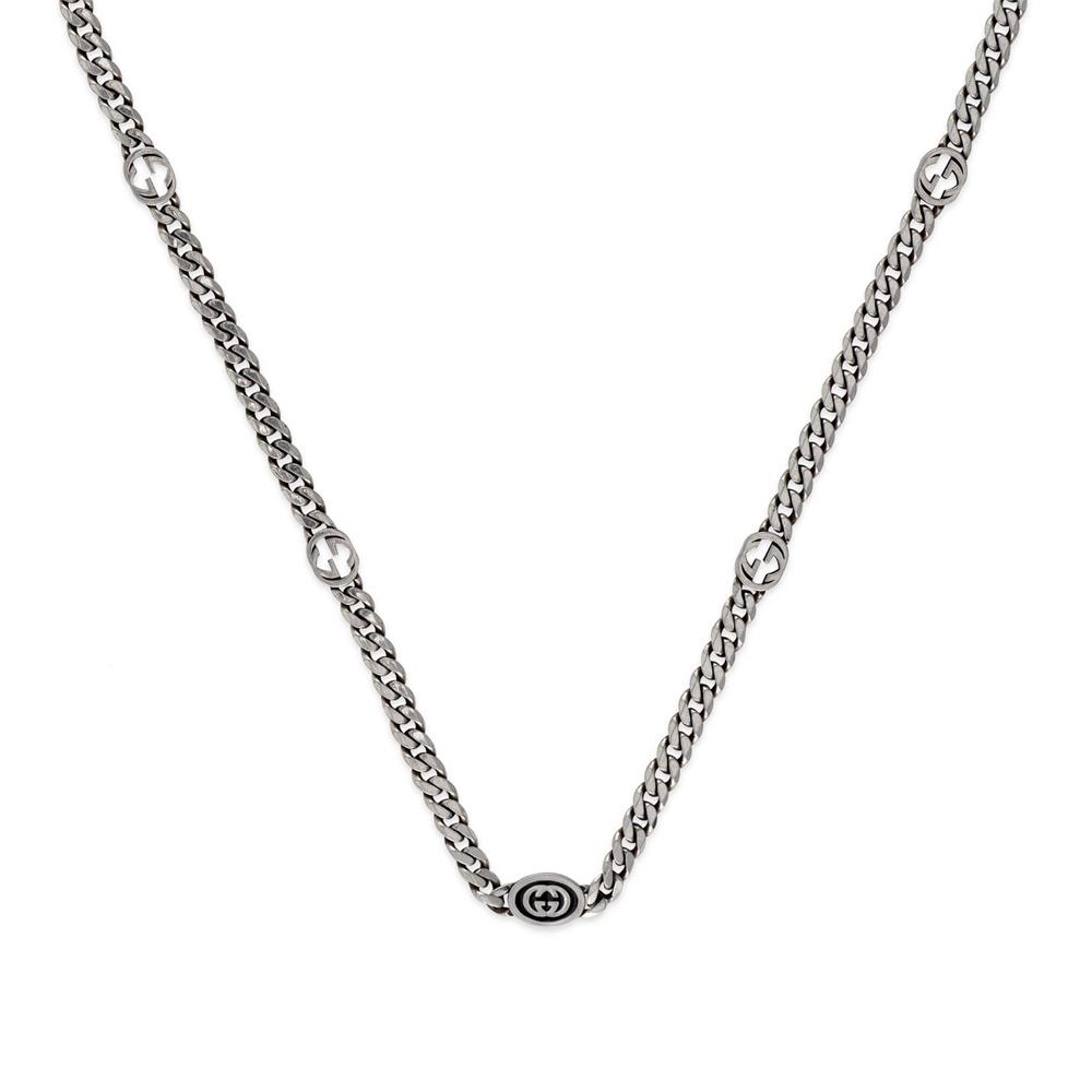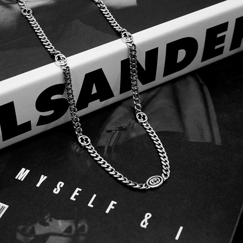 GUCCI INTERLOCKIN G 雙G細版古巴項鍊 925純銀 古馳