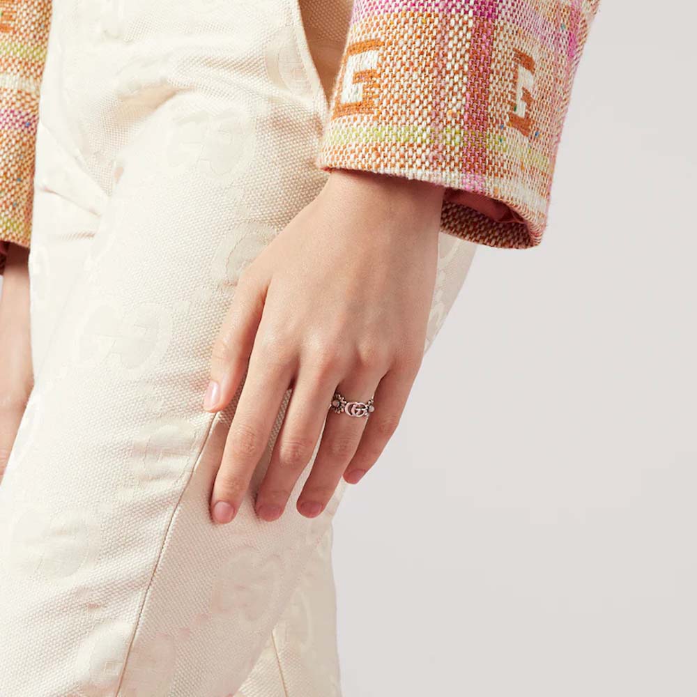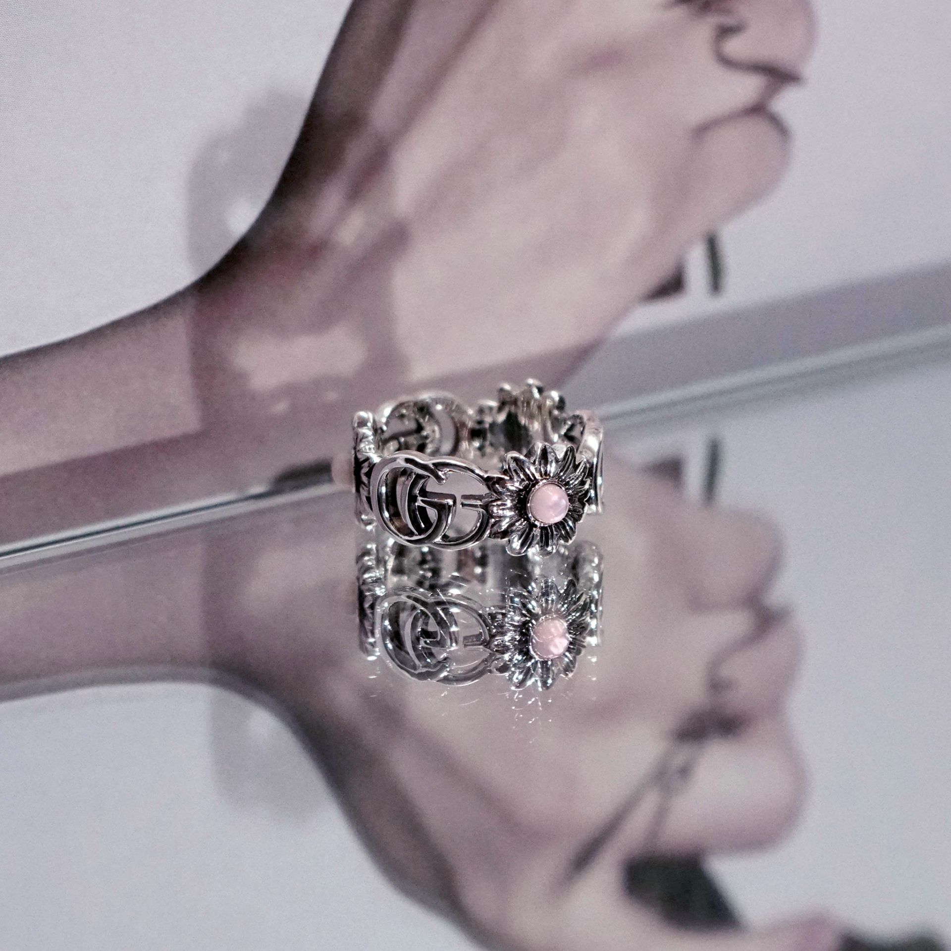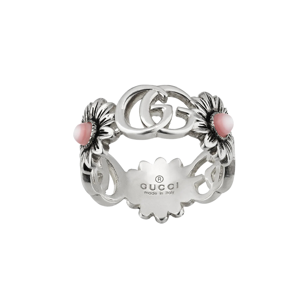 GUCCI MARMONT 雙G雛菊珍珠母貝戒指 粉色珍珠 925銀 古馳