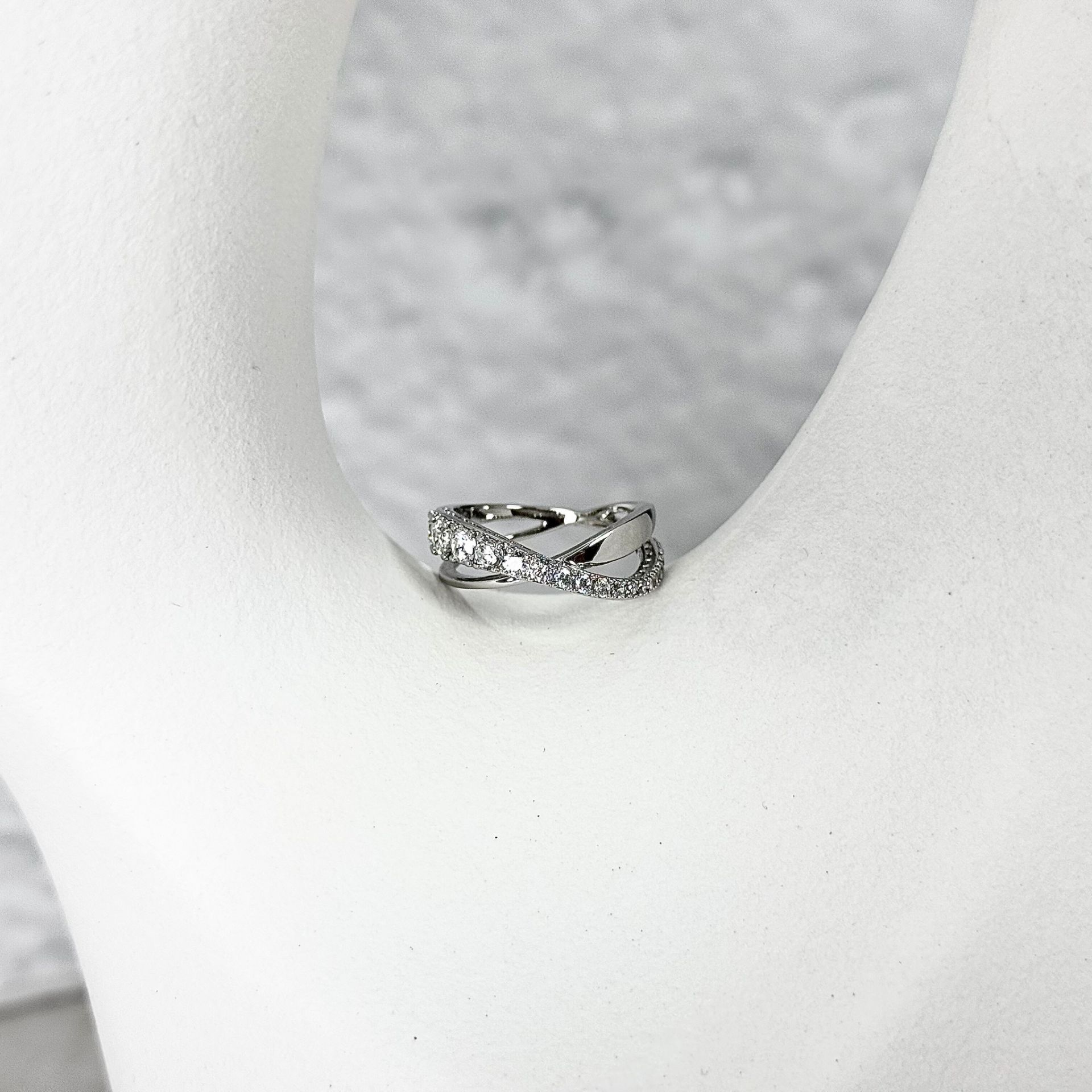 SWAROVSKI Hyperbola 雙線條交疊 密鑲繞鑽 戒指 鍍白金色