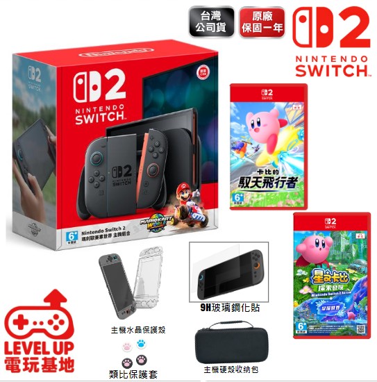 Nintendo Switch 2 瑪利歐賽車世界同捆主機+NS2 卡比遊戲*2同捆一次滿足組+精美周邊組