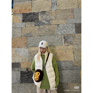 Aape 胸口矽膠猿猴小Logo 搭配背後字母 黑色 白色 灰色 立領羽絨背心