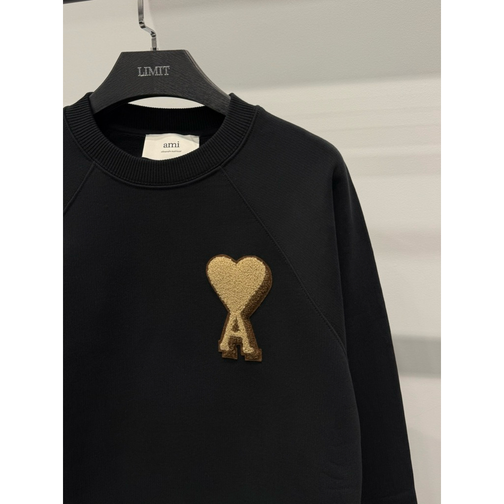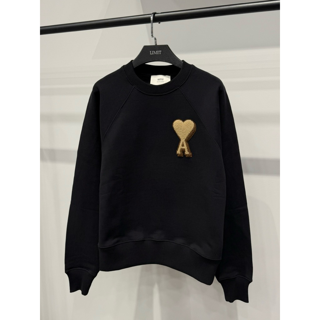 Ami新款 泰迪熊 大愛心設計 黑色大學t 長袖