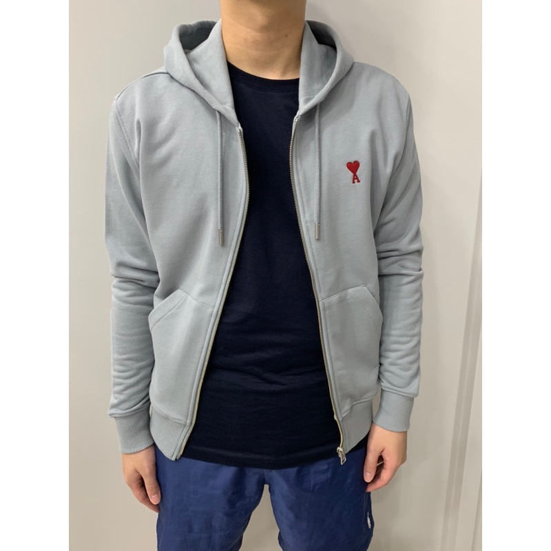 Ami 灰藍色 刺繡小愛心設計 連帽外套