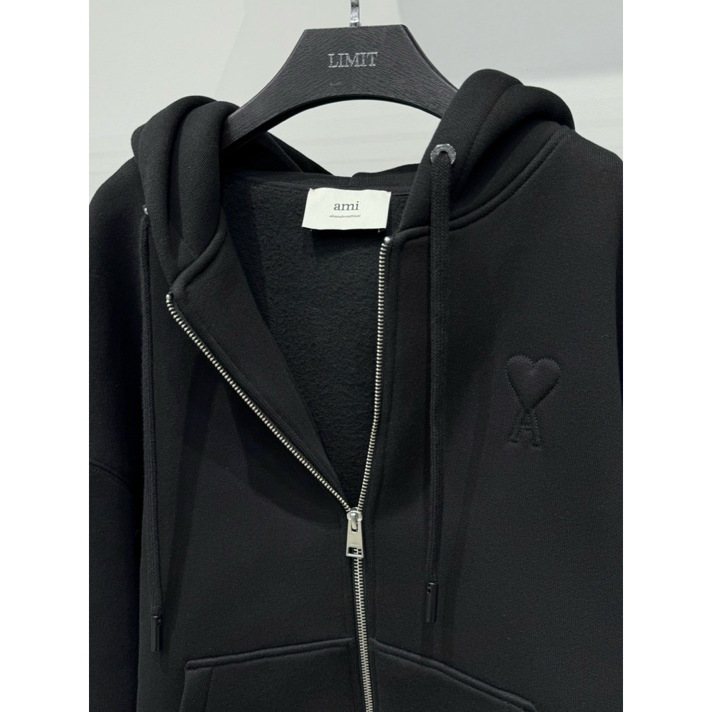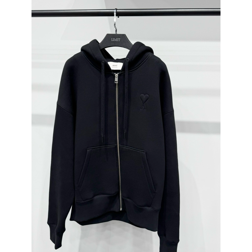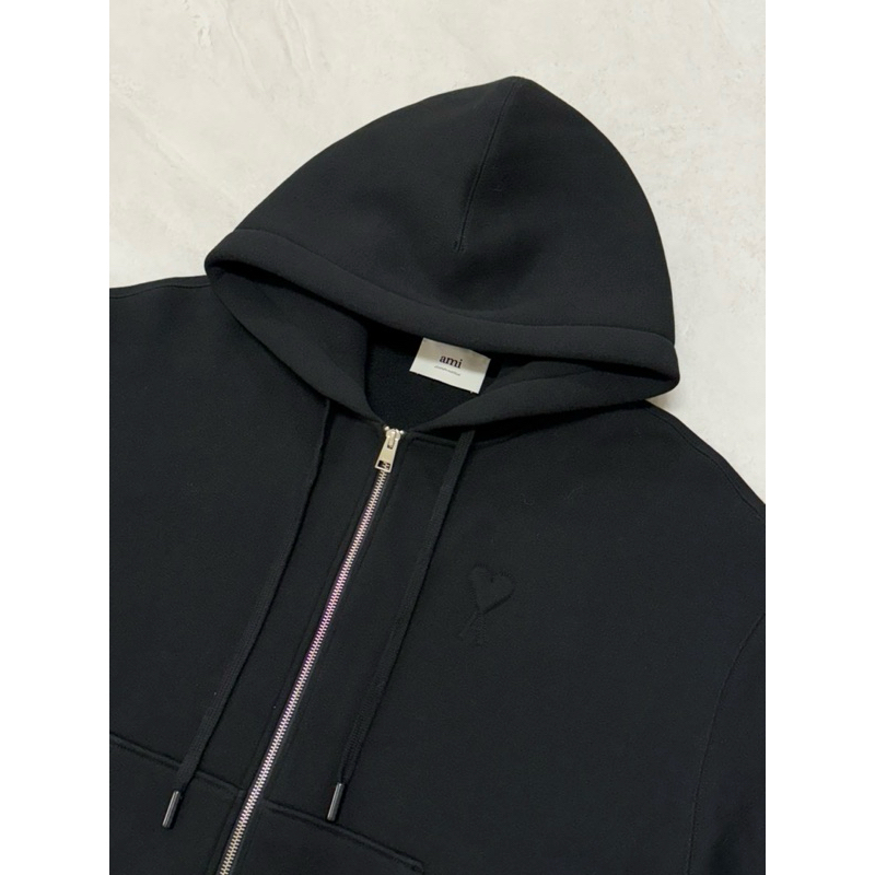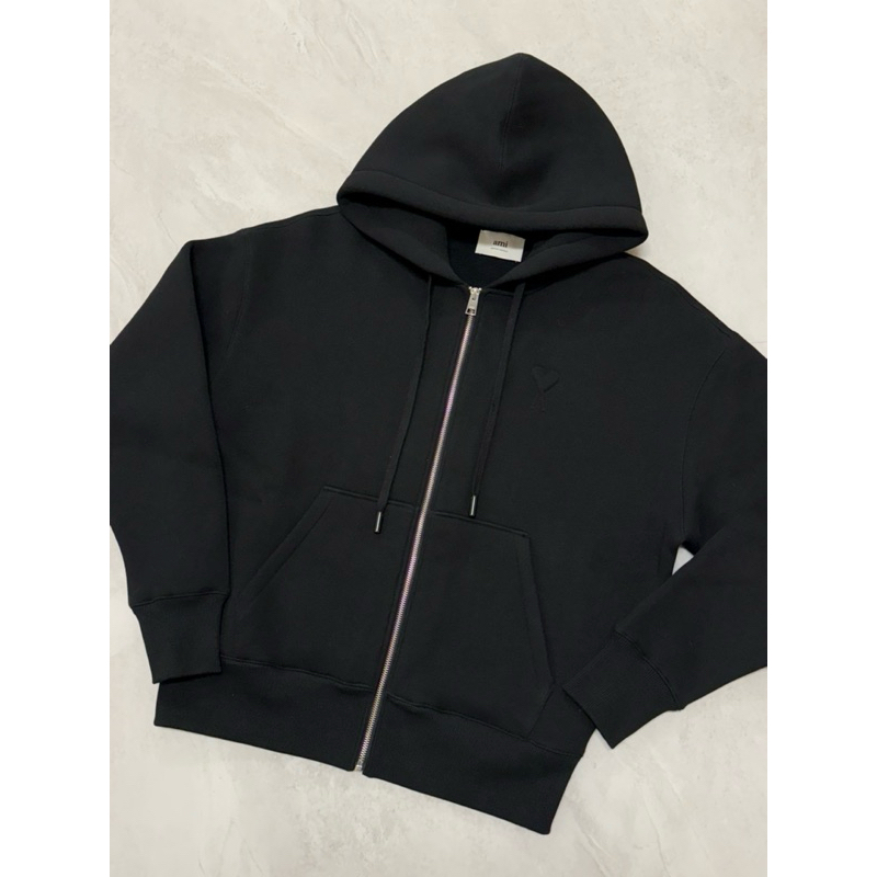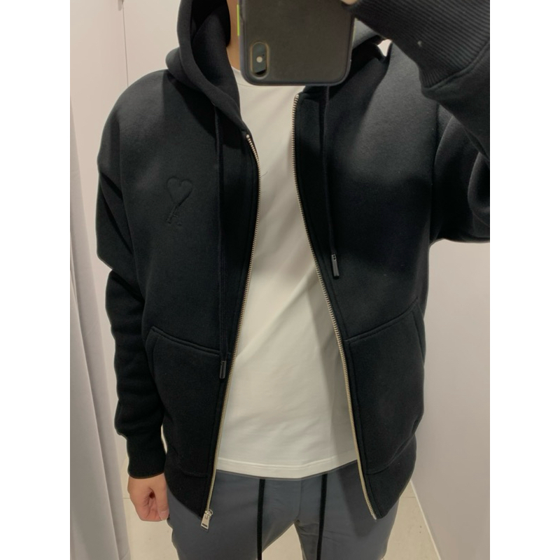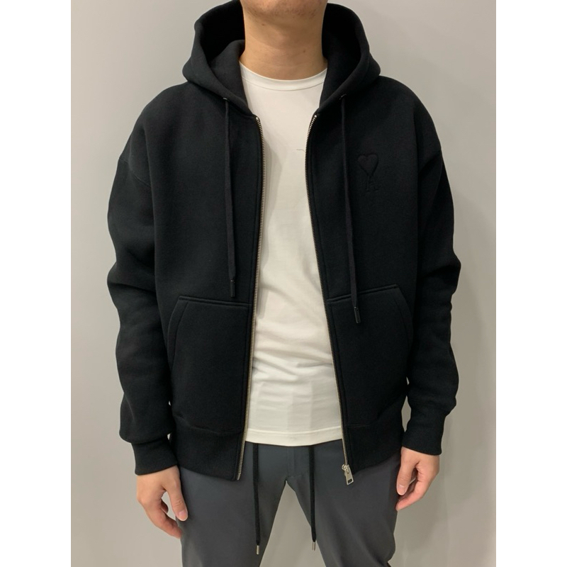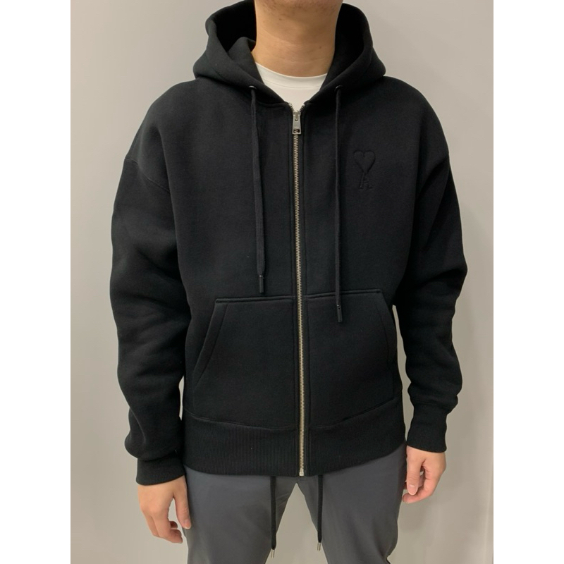 Ami 經典款式 厚款 浮雕愛心黑色 連帽外套