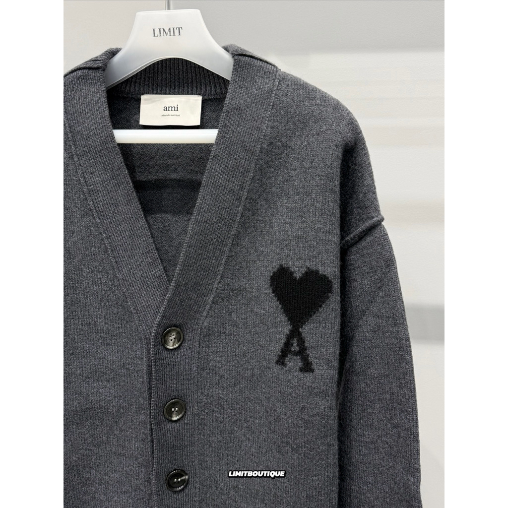 Ami 經典深灰色 黑愛心設計 羊毛 毛衣 針織罩衫 外套 開襟衫