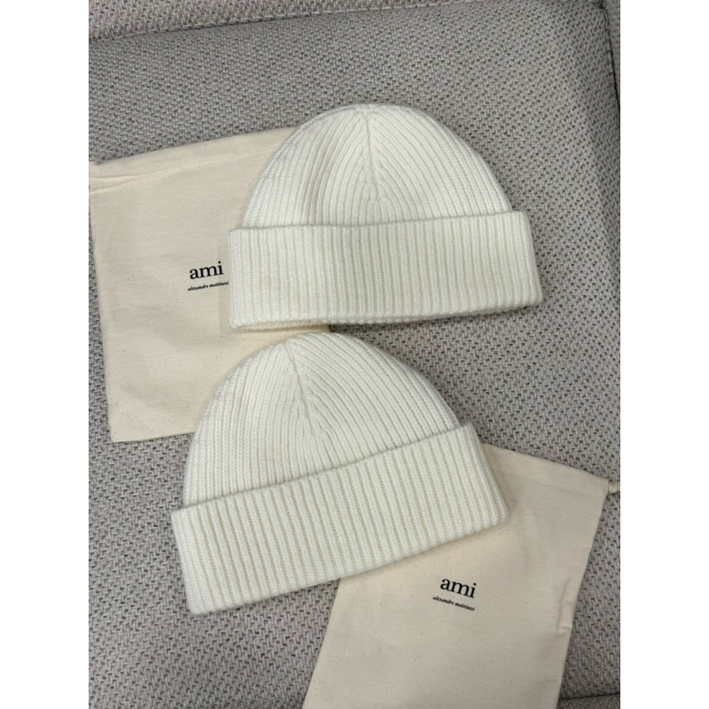 Ami 經典 刺繡愛心設計 白色 毛帽