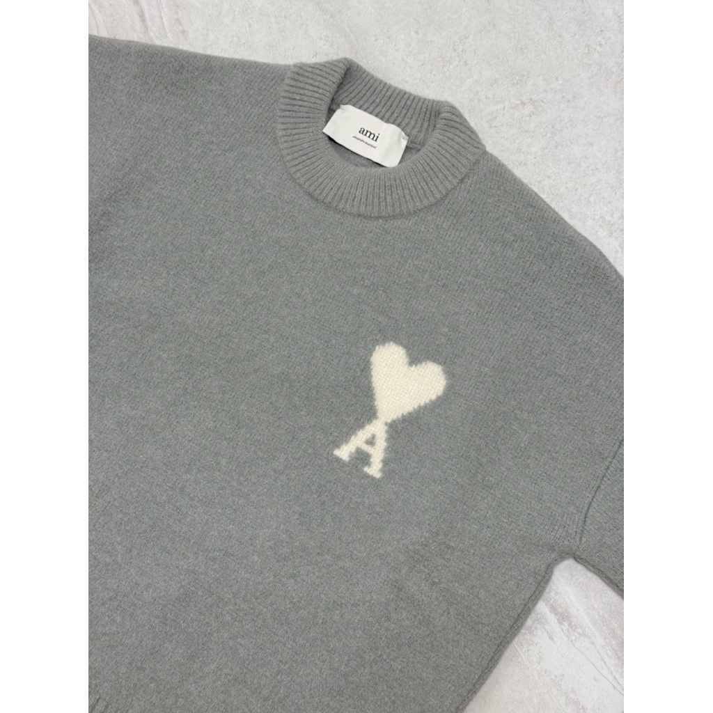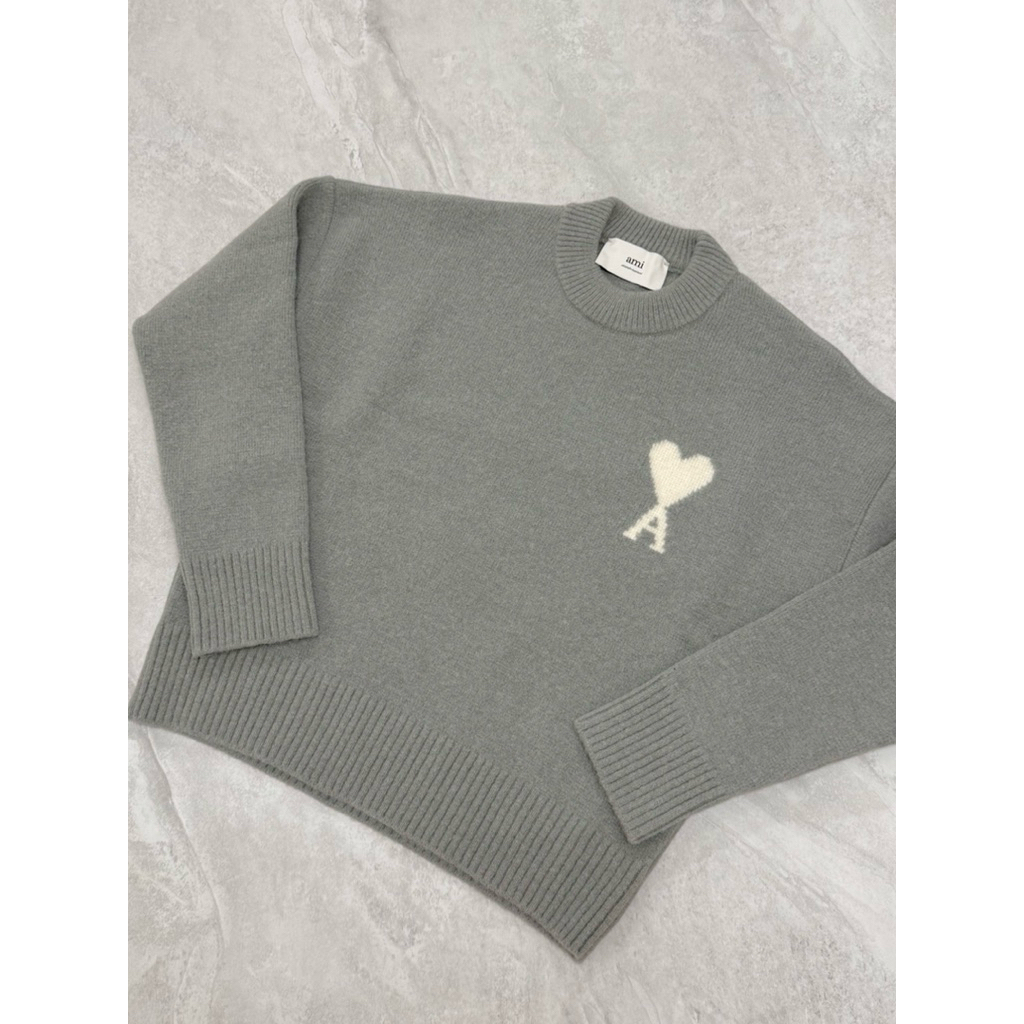 Ami 經典 灰白色愛心設計 羊毛 毛衣