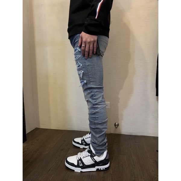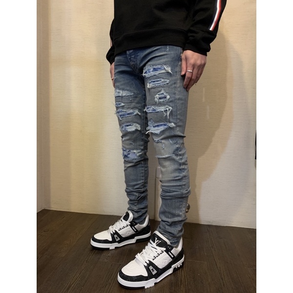 AMIRI 經典 藍色破壞 彈性 窄管 牛仔褲