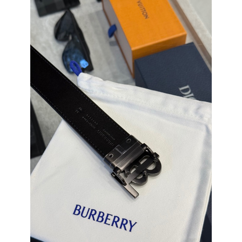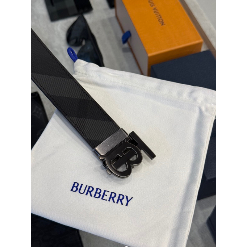 Burberry 經典TB Logo設計 黑格紋、素面 雙面 皮帶