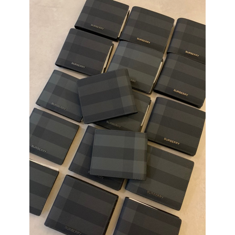 Burberry 黑格紋設計 搭配立體字母 男生 八卡 零錢袋 短夾 無盒