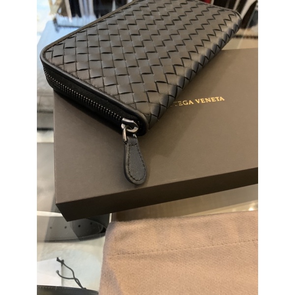 Bv 長夾經典 黑色牛皮義大利編織男生拉鏈長夾