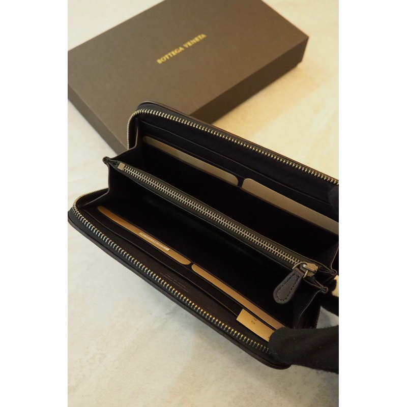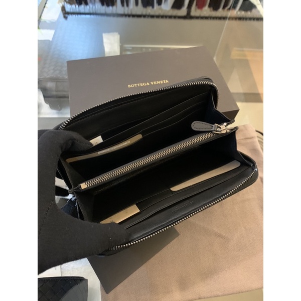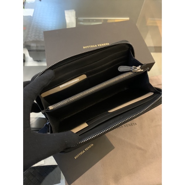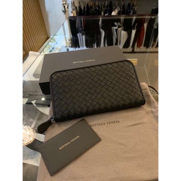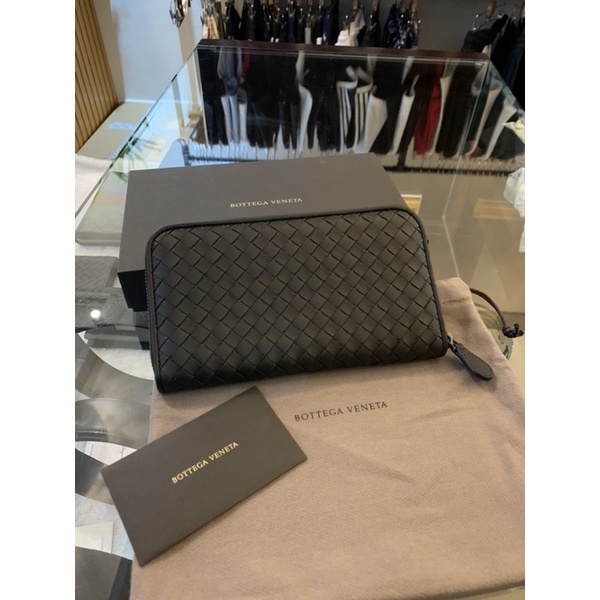 Bv 長夾 經典 黑色 設計 牛皮義大利編織男生拉鏈、掀蓋式 長夾