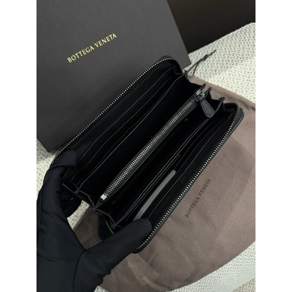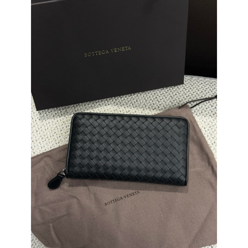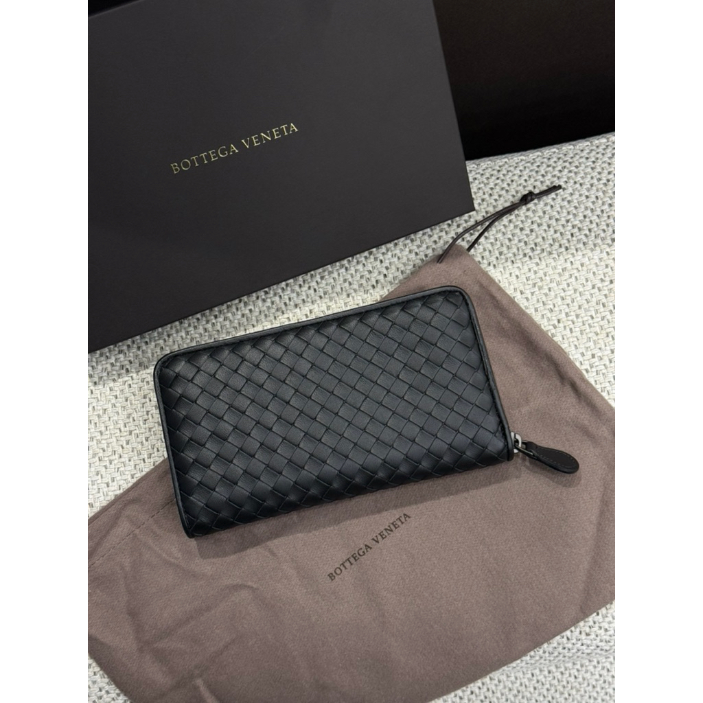 Bv 長夾經典 黑色設計 牛皮義大利小編織 男生 男款 拉鏈長夾