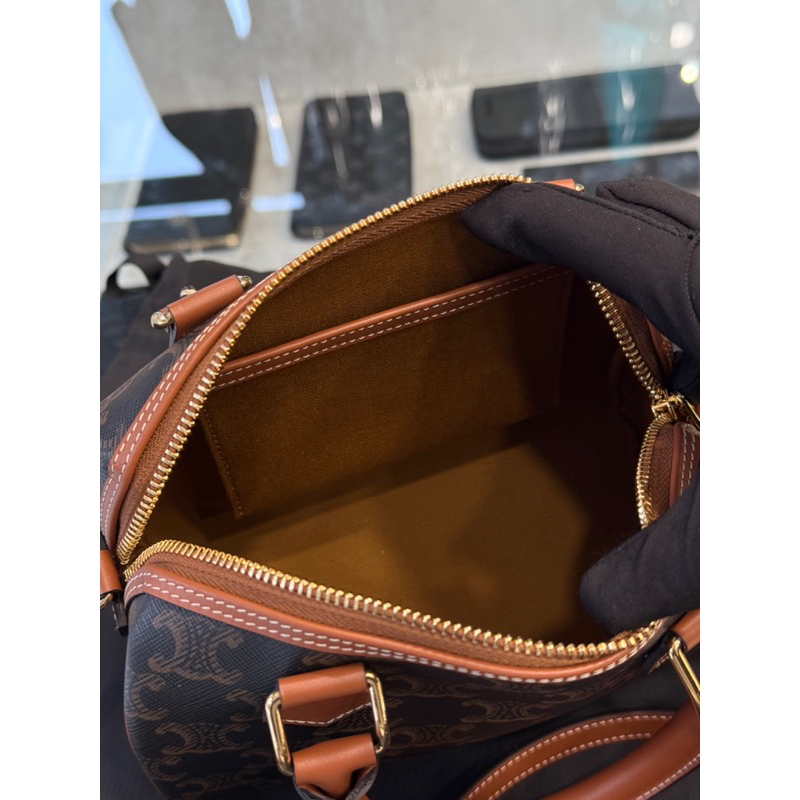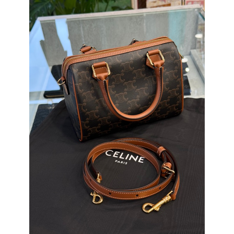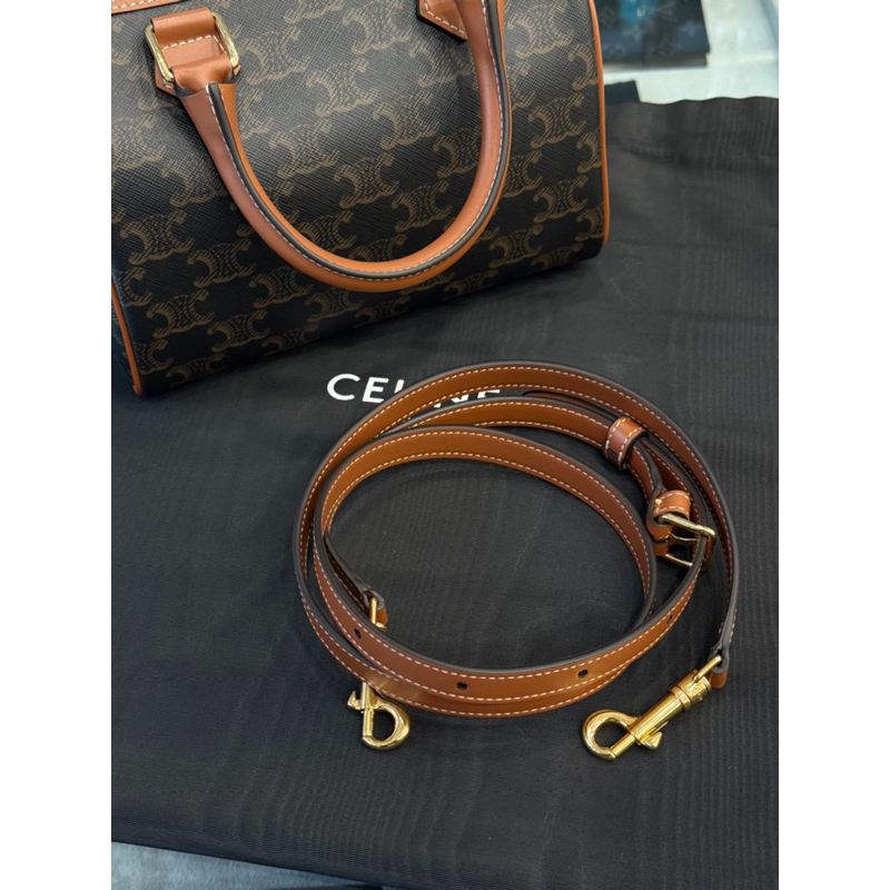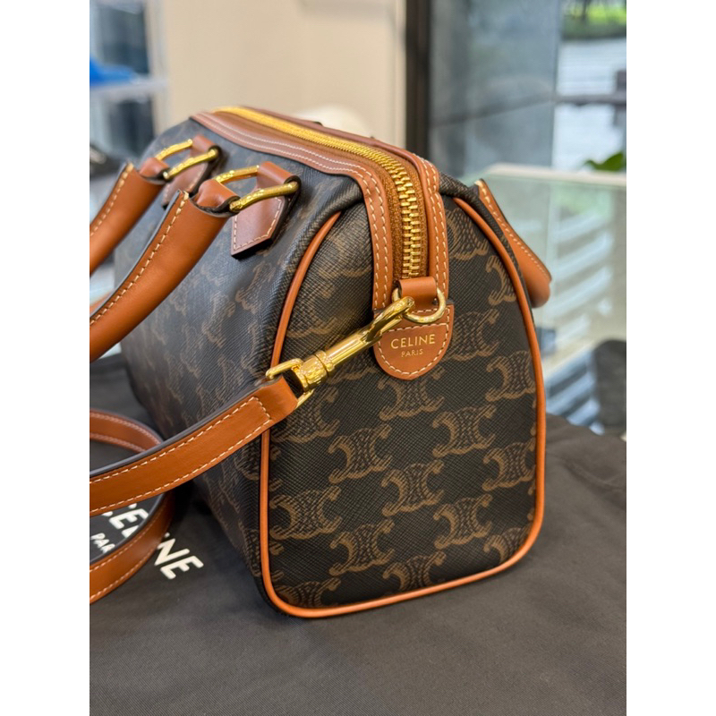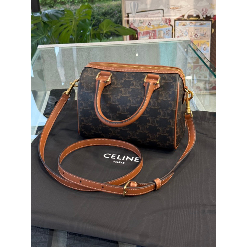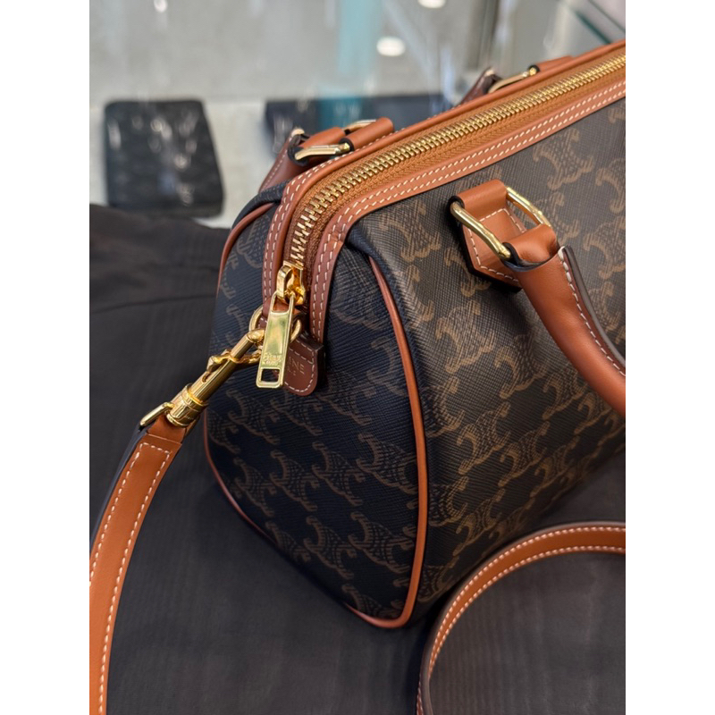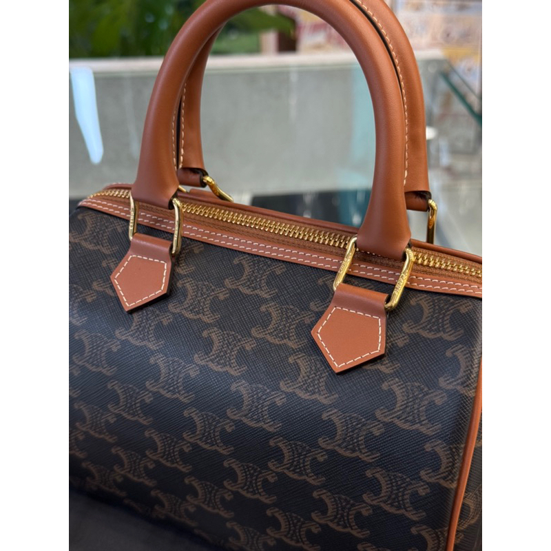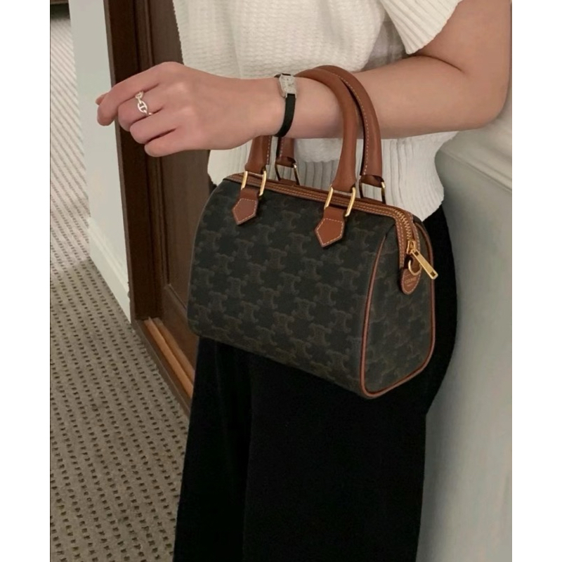 Celine 經典老花配色 標誌印花牛皮革小號波士頓包