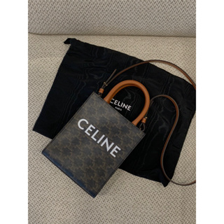 Celine 經典 咖啡色老花設計 搭配字母 琴譜包 手提 側背包