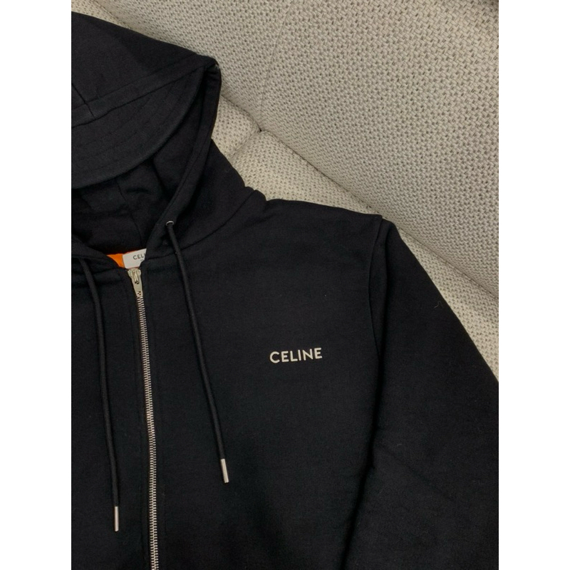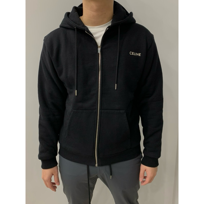 Celine 經典 胸口 小logo 設計 厚款 黑色 連帽外套