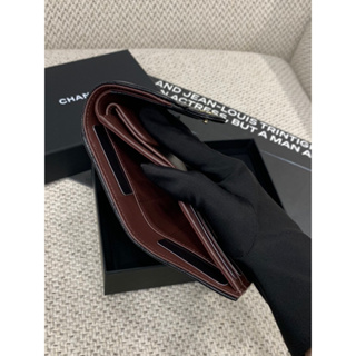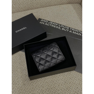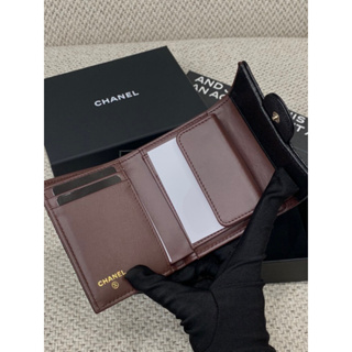 Chanel 香奈兒 經典 黑金配色 荔枝皮 女生 新款 三折 皮夾 短夾