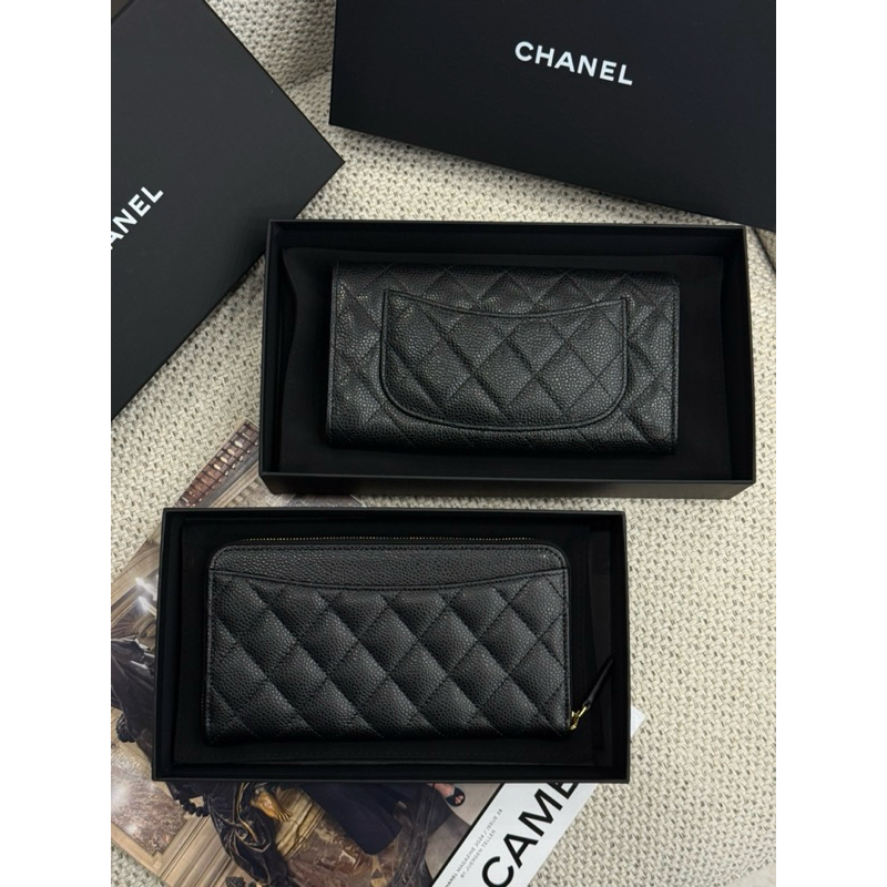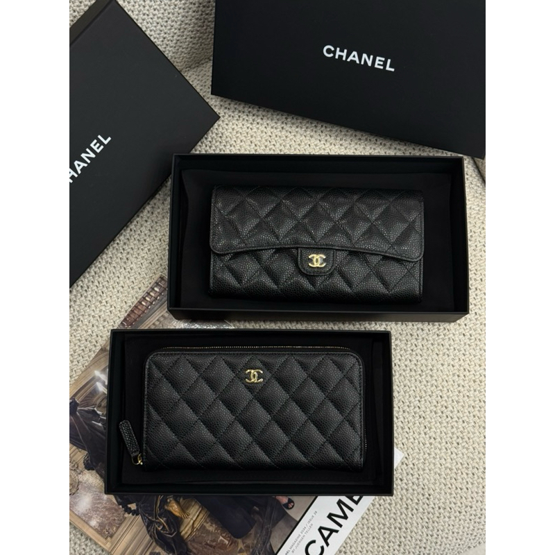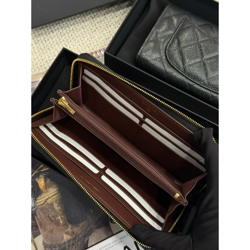 Chanel Coco 菱格紋 黑色金扣 荔枝小牛皮 拉鍊 扣式 女生 女款 皮夾 長夾