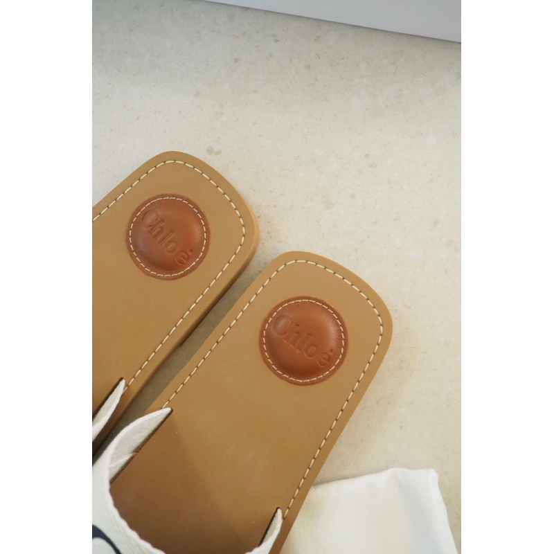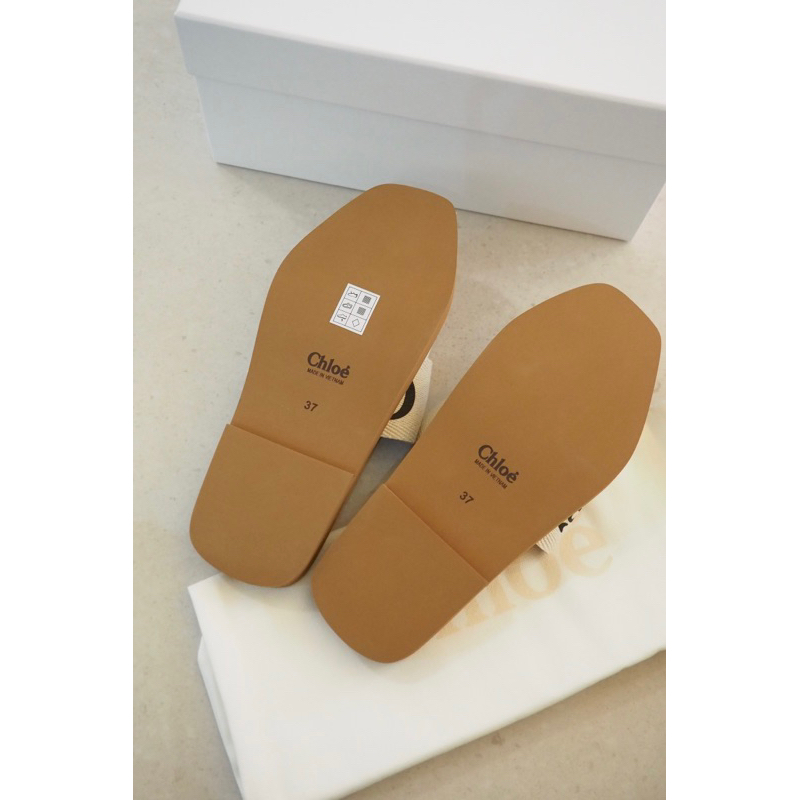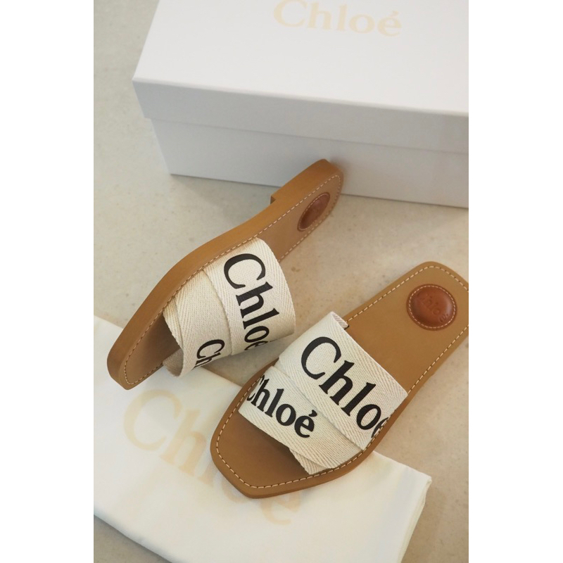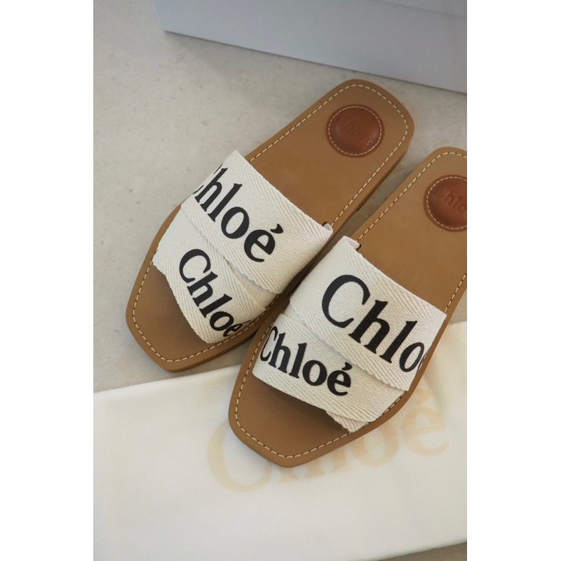 Chloe 蔻依 Woody 棉質織布 平底 拖鞋 白色 現貨