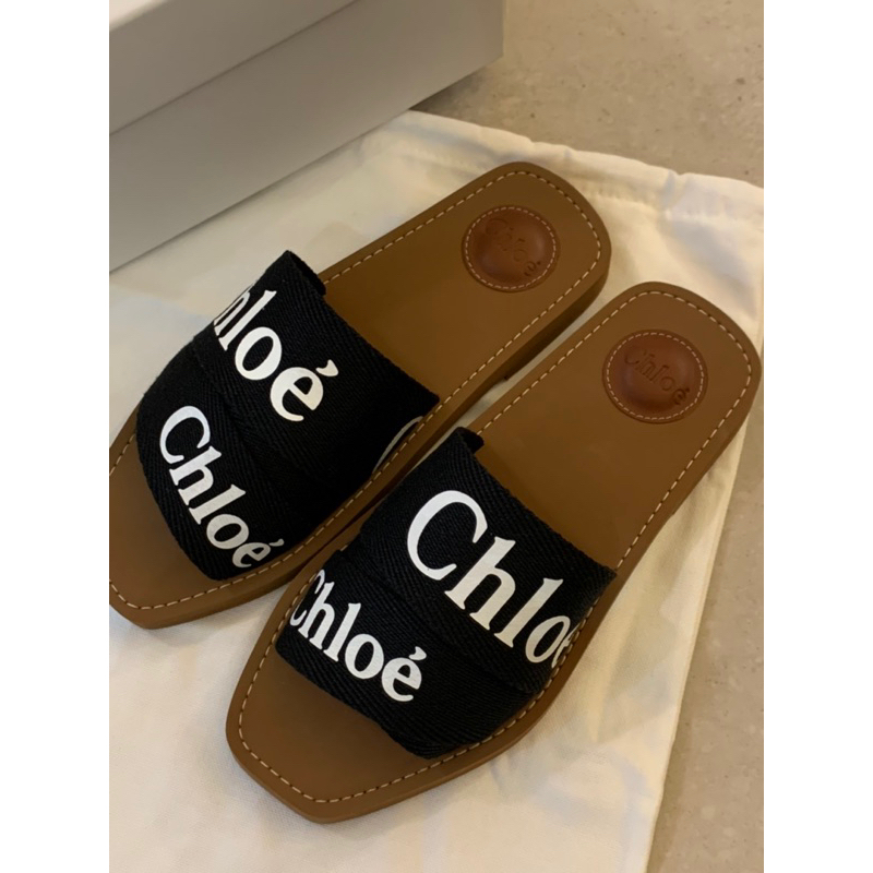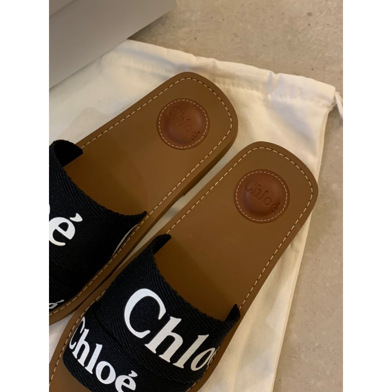 Chloe 蔻依 Woody 棉質織布 平底 黑色 拖鞋 現貨