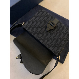 Dior 皮革馬鞍設計 黑色 、卡其色 老花 男生 側背包 郵差包