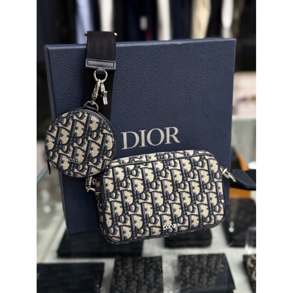 Dior 經典卡其色 刺繡滿版logo設計 側背包
