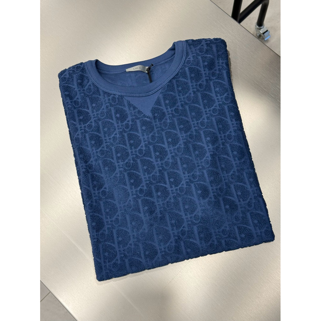 Dior 經典滿版 毛巾布材質 寶藍色 短袖T恤上衣