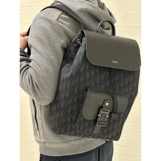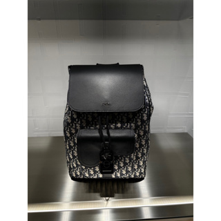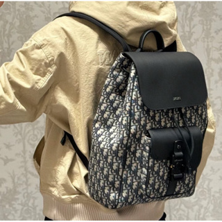 Dior 經典牛皮設計 搭配 黑色、卡其老花滿版logo設計 後背包