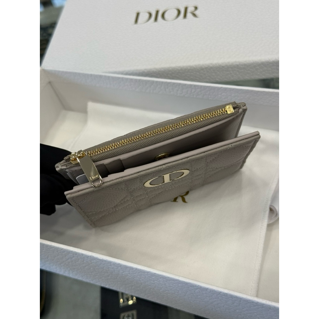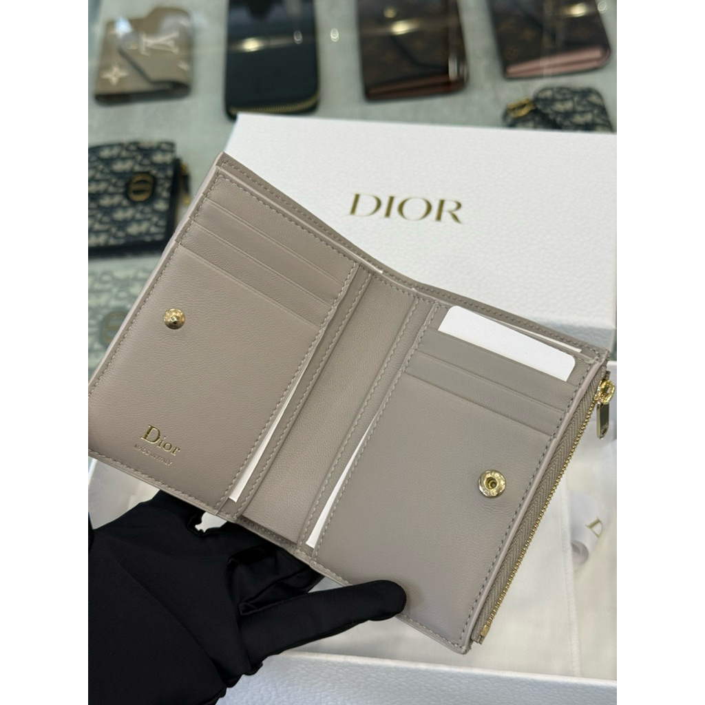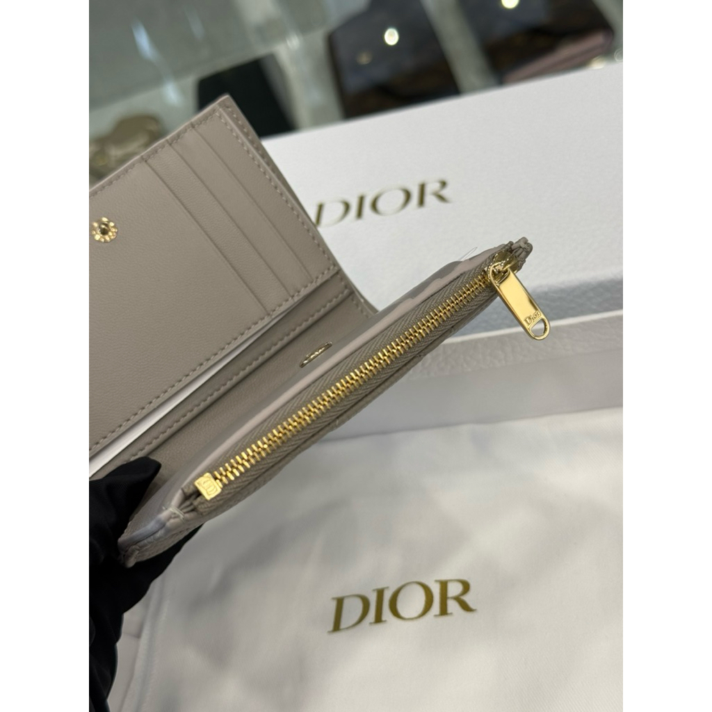 Dior 經典 大象灰 柔軟小牛皮材質 女生 對開 短夾