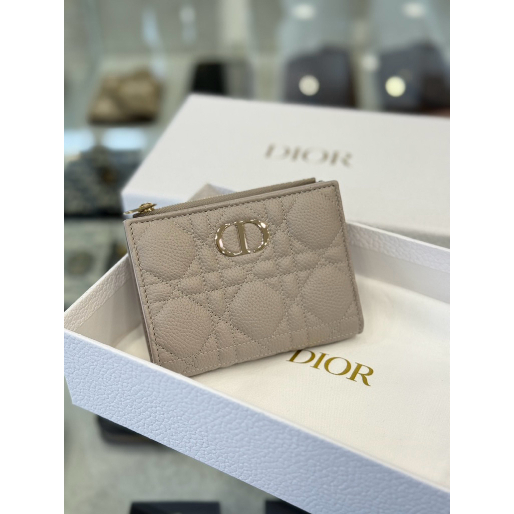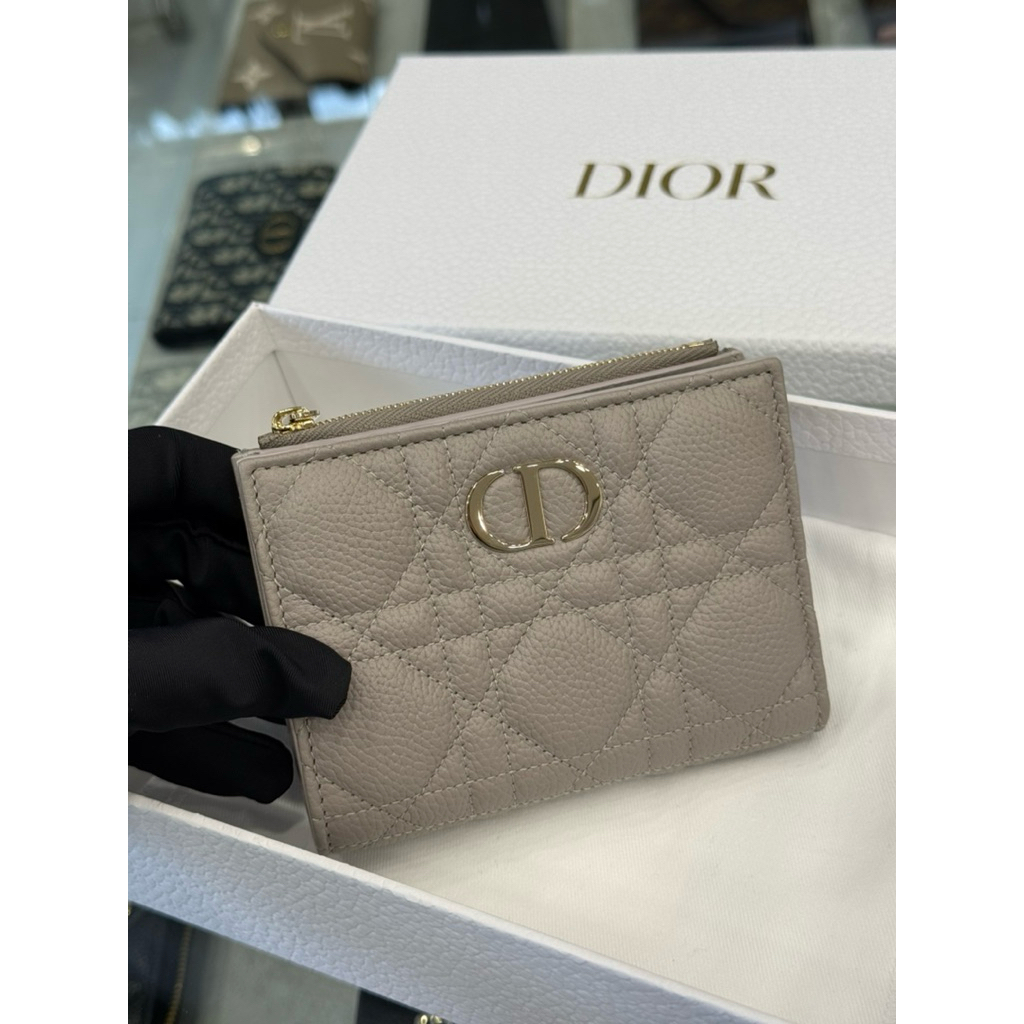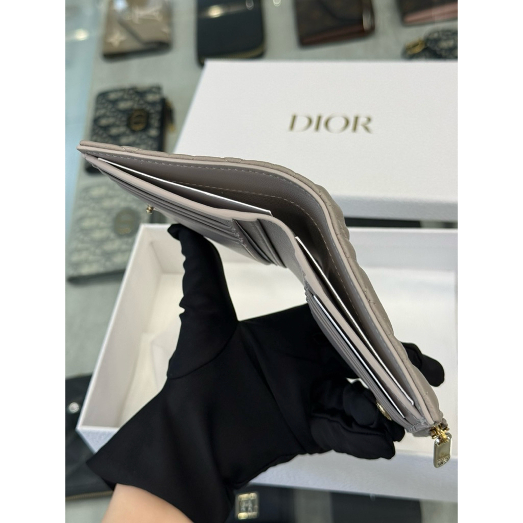 Dior 經典 大象灰 柔軟小牛皮材質 女生 對開 短夾