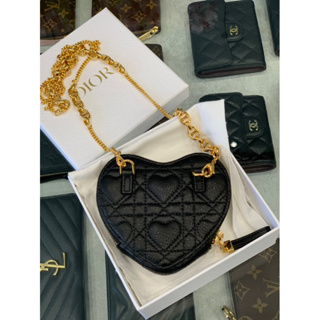Dior 經典 素面搭配黑金logo設計 愛心 小鏈包