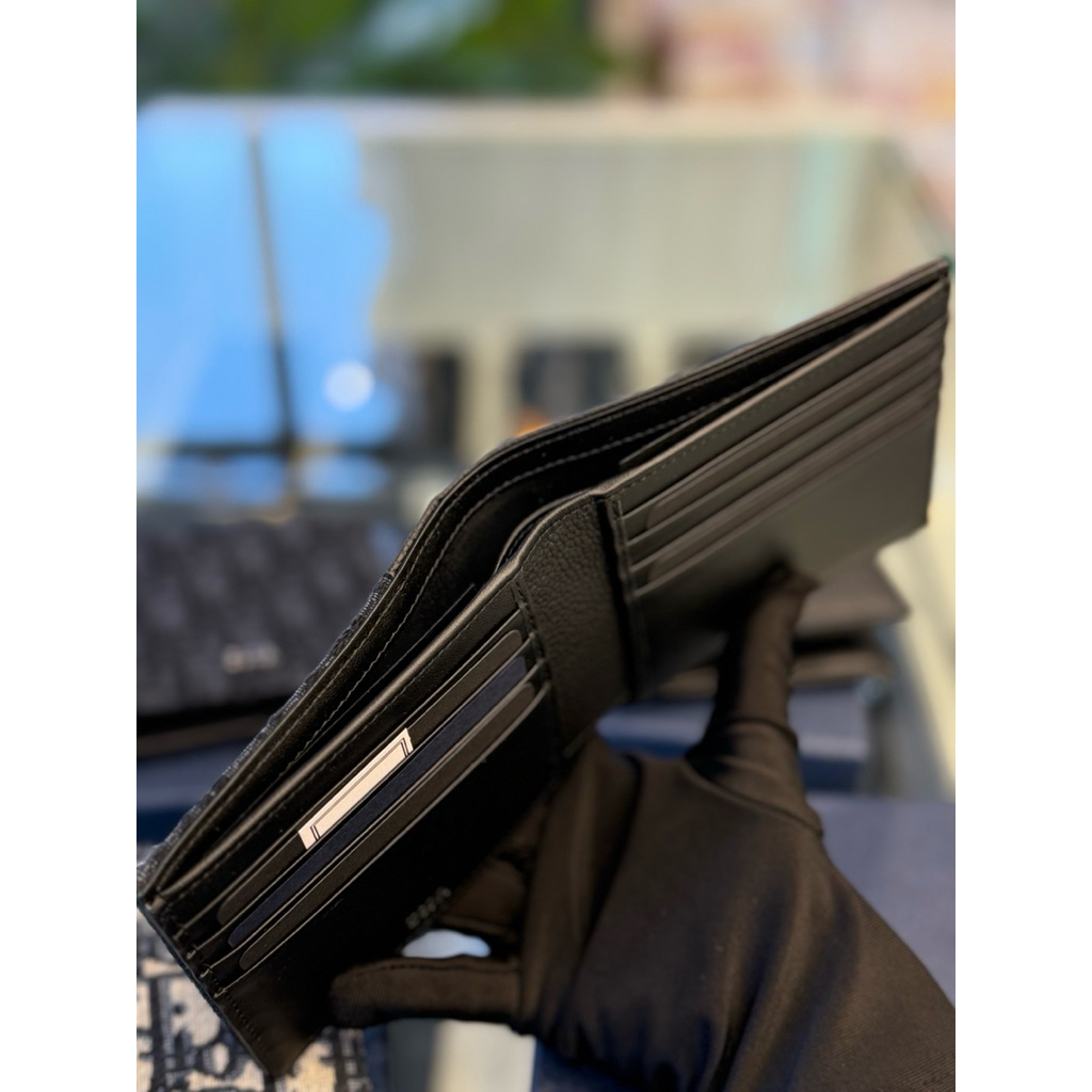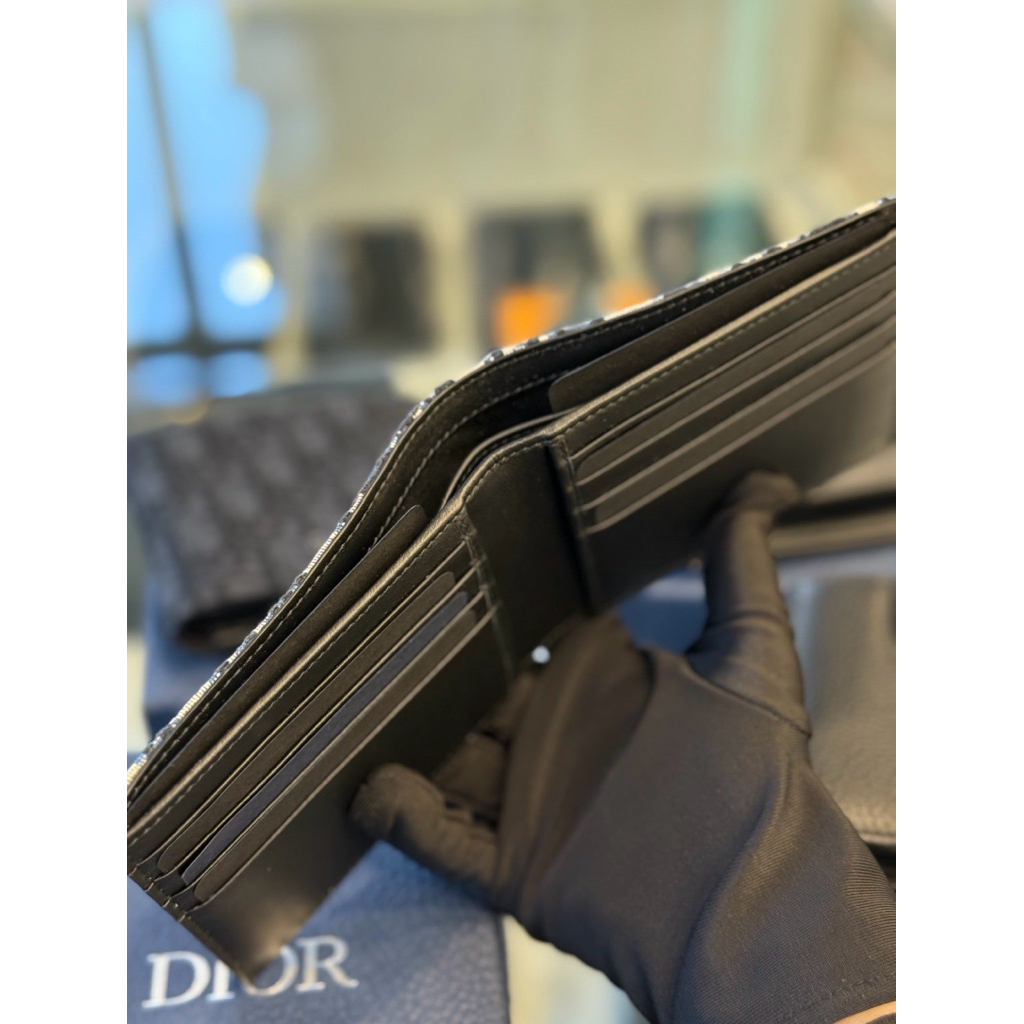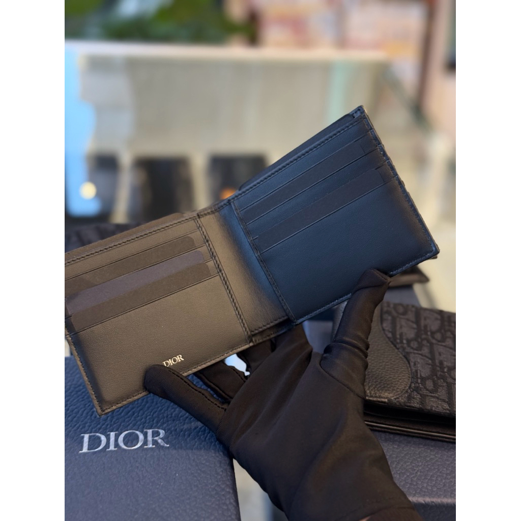 Dior 經典 黑色、卡其刺繡滿版,皮革滿版設計 立體logo 男生 零錢袋 八卡 短夾