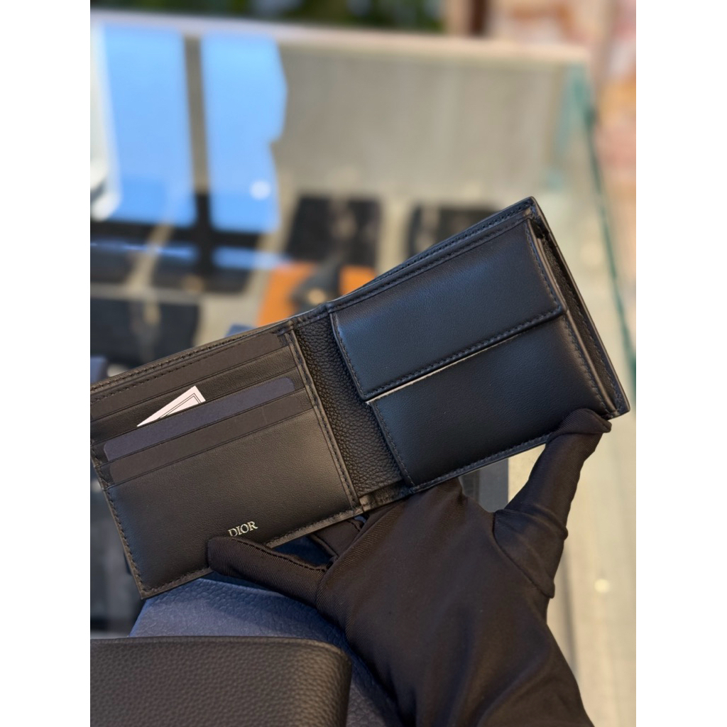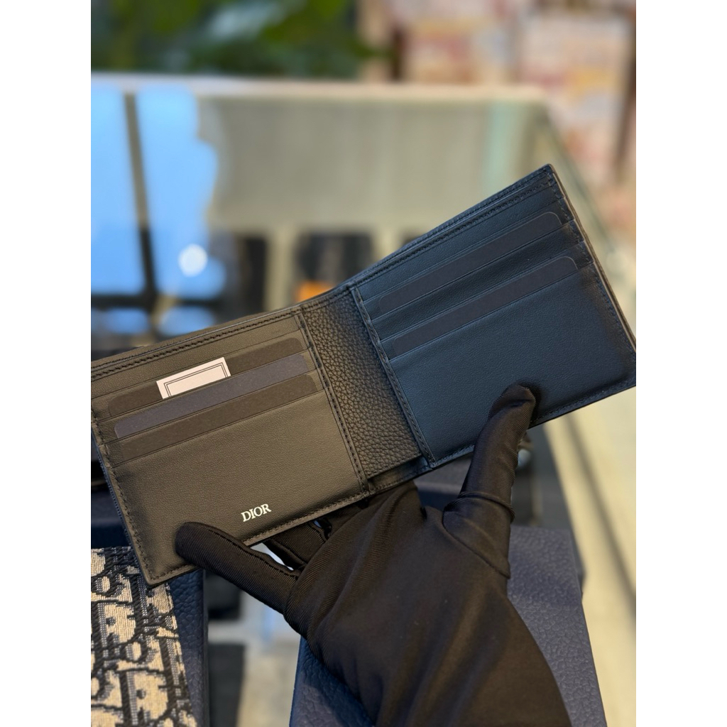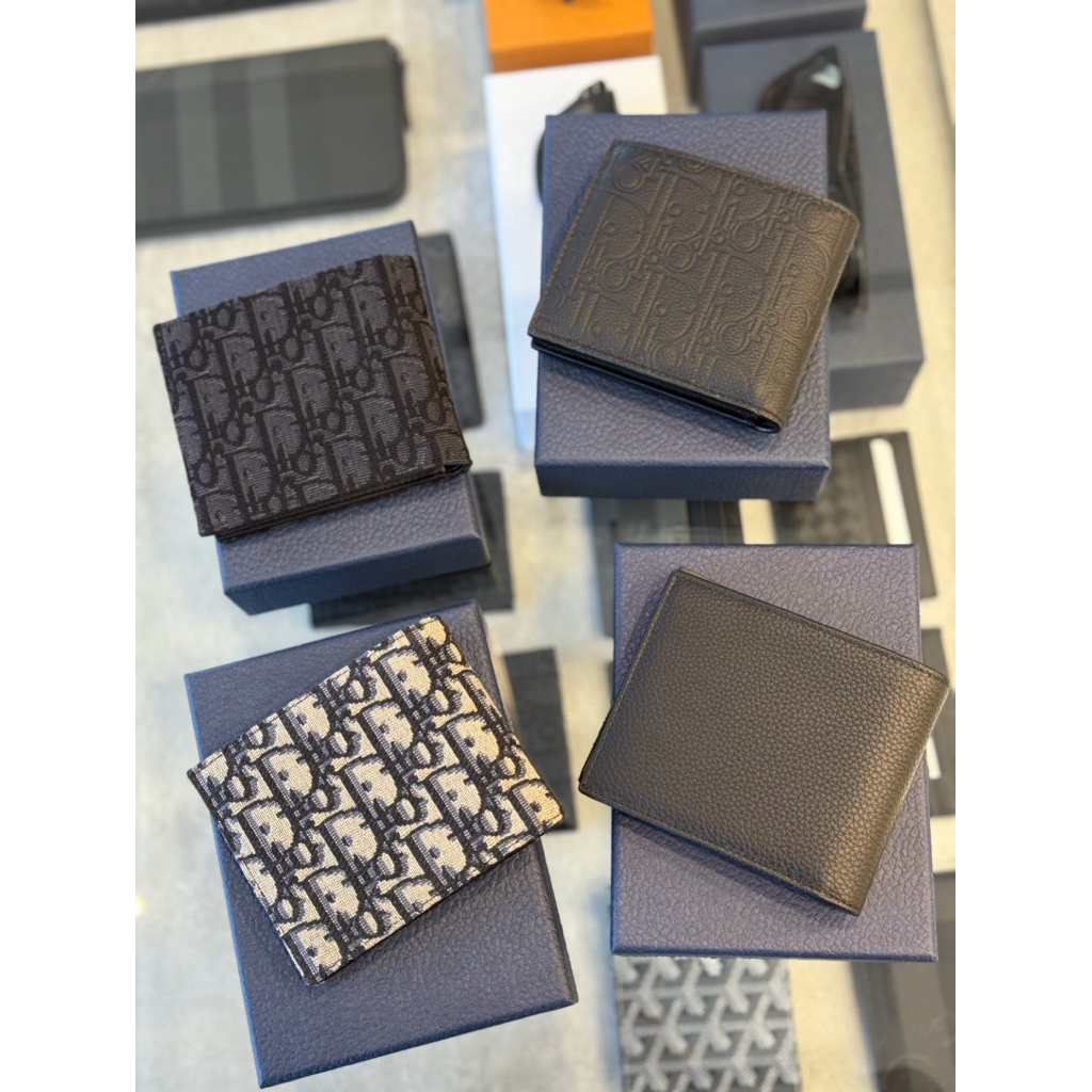 Dior 經典 黑色、卡其刺繡滿版,皮革滿版設計 立體logo 男生 零錢袋 八卡 短夾