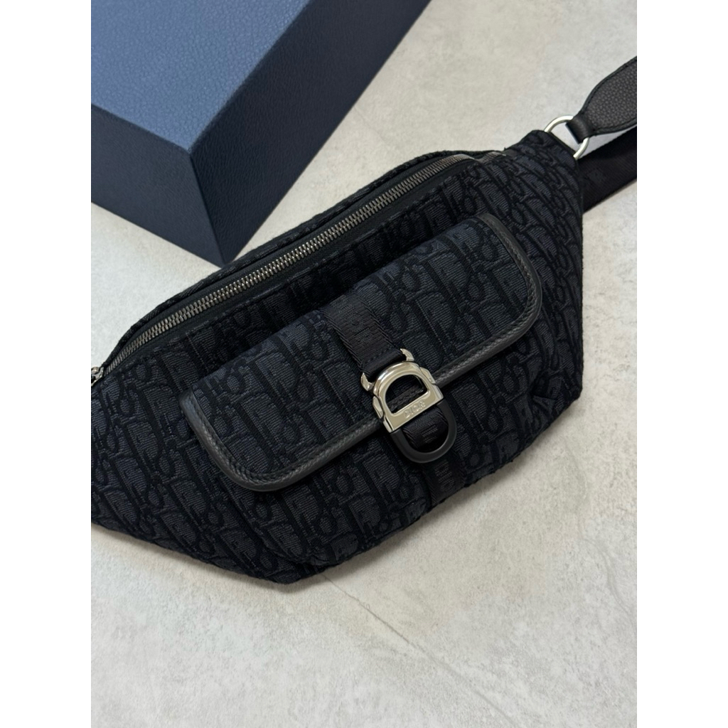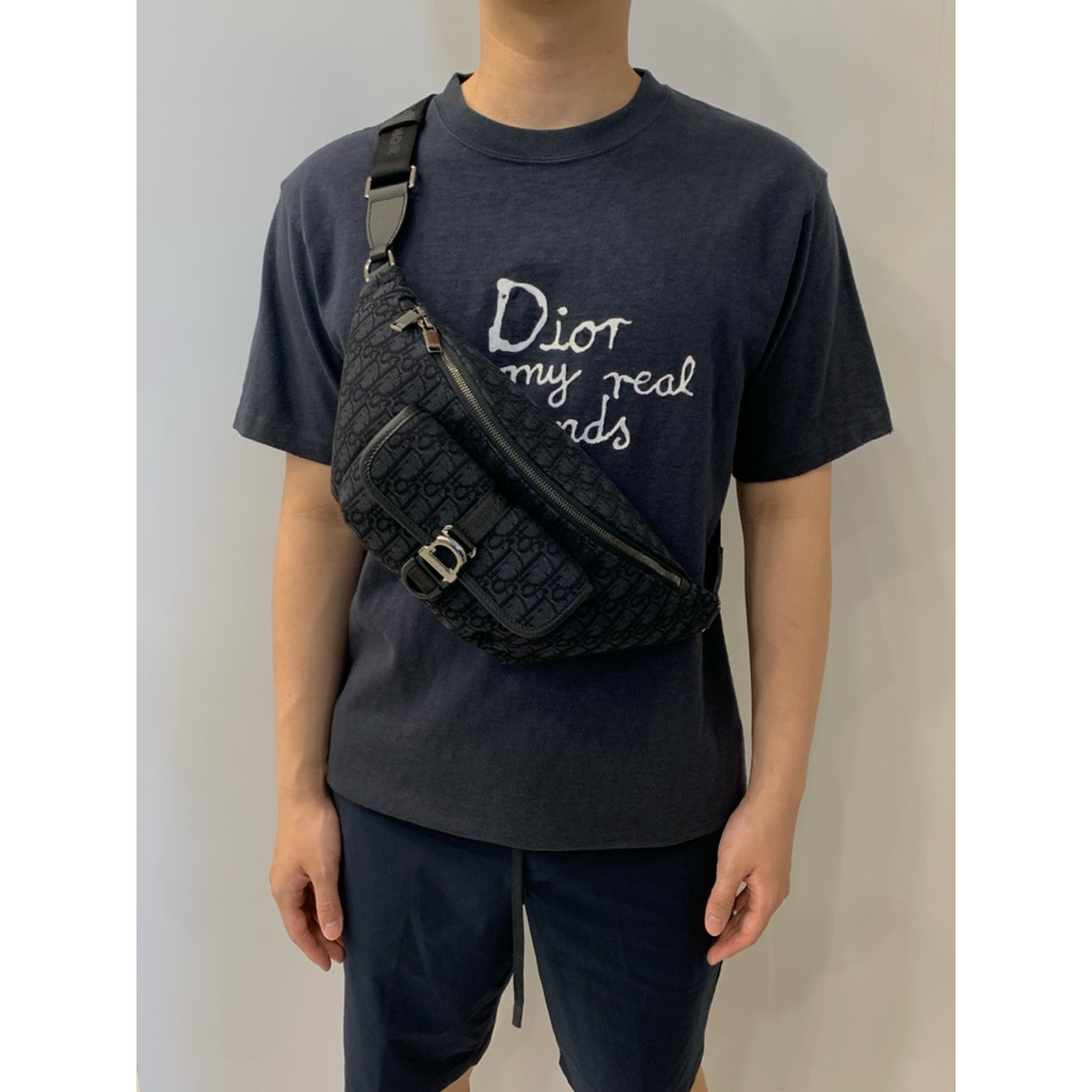 Dior 經典 黑色老花 刺繡 滿版設計 男生腰包