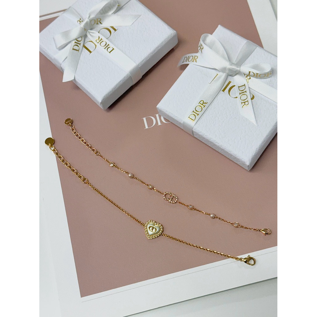 Dior 經典CD Logo、愛心設計 金色 女生 雙鏈 手鍊