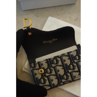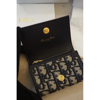 Dior 迪奧 經典深藍老花 馬鞍、CD設計 風琴 女生 女款 扣子 扣式 卡包