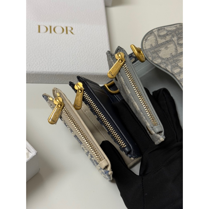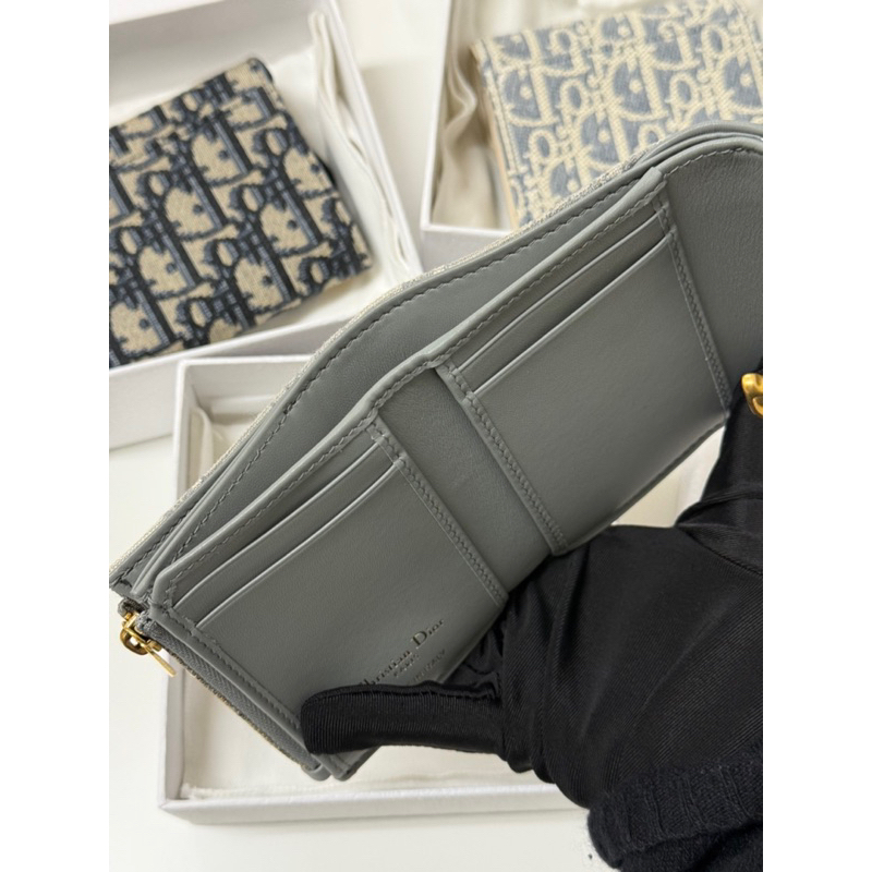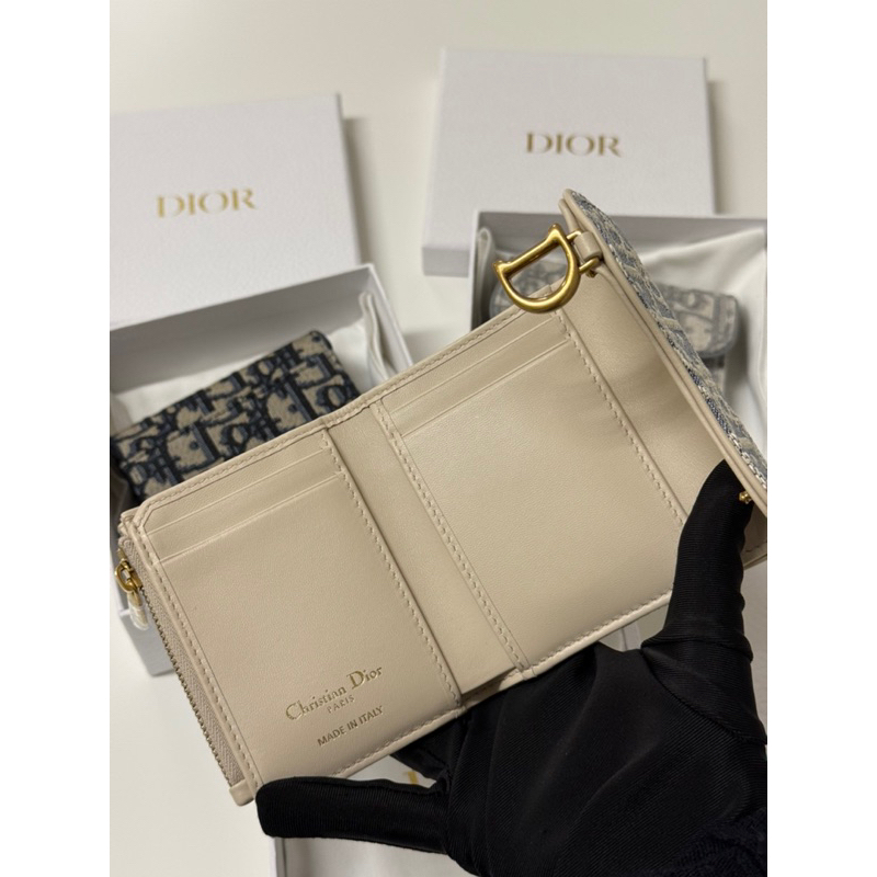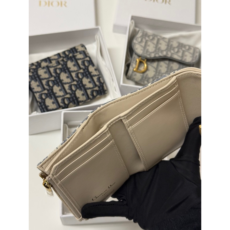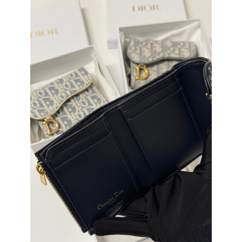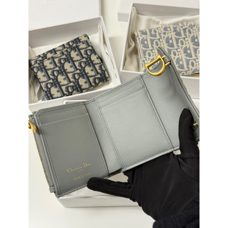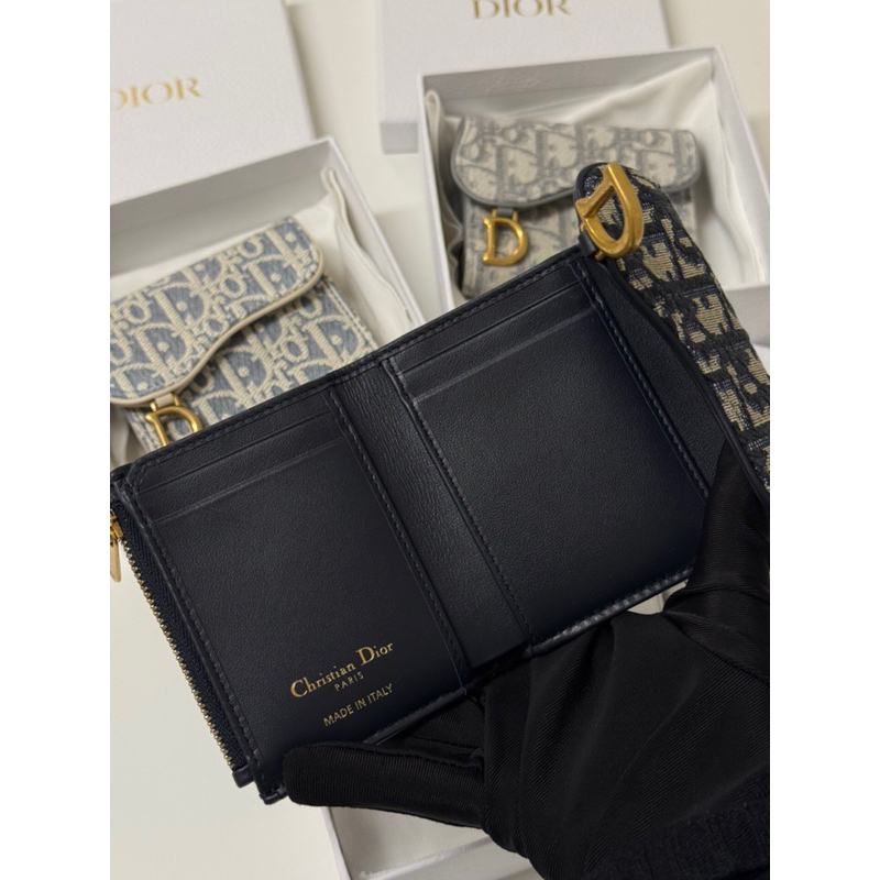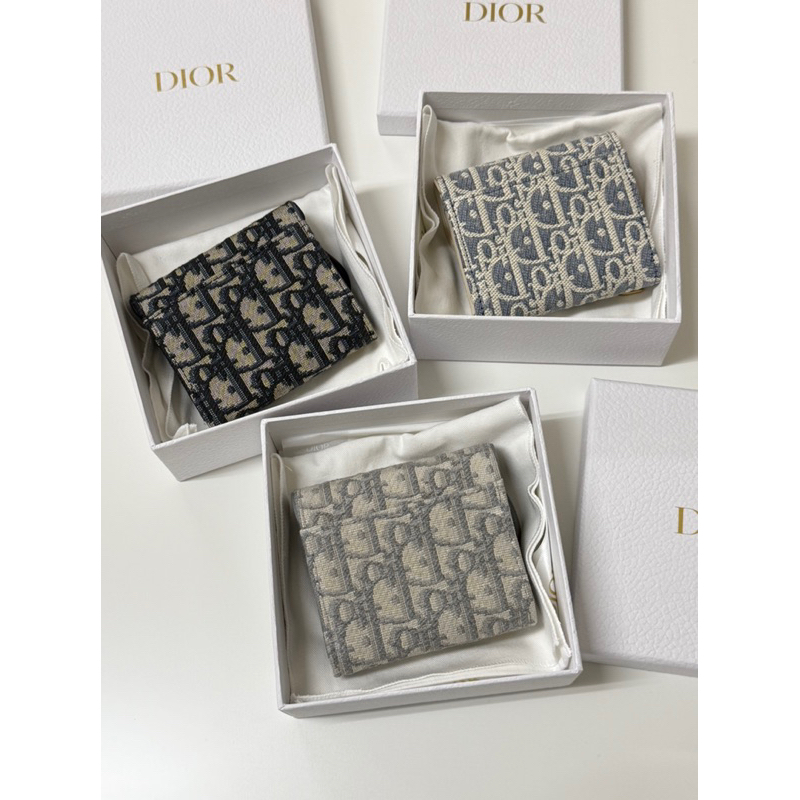 Dior 迪奧 經典緹花老花Logo 馬鞍系列 深藍 灰色 三折 女生 女款 皮夾 短夾