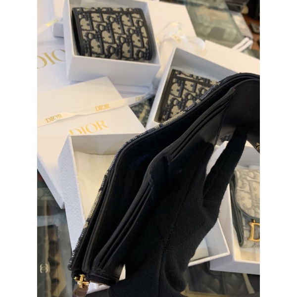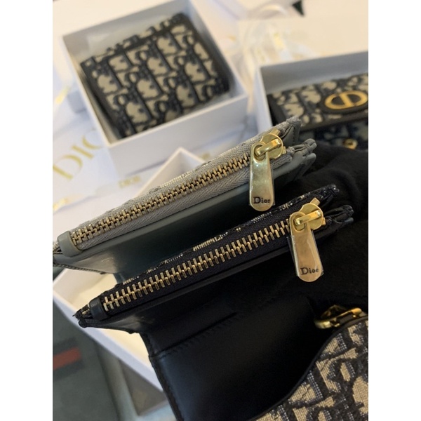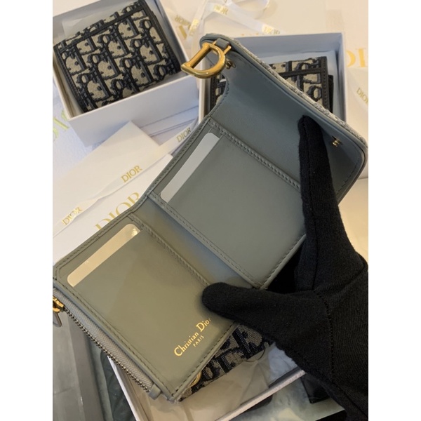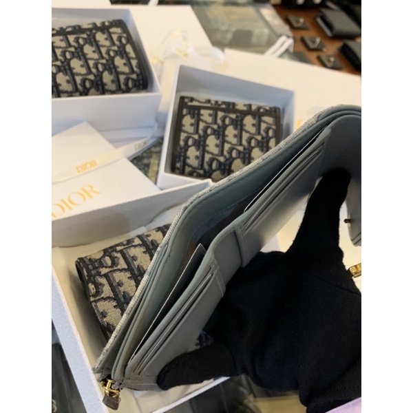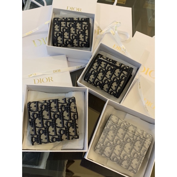 🔥藍色 、灰色 Dior Oblique 提花製成 搭配金色 小logo設計 馬鞍短夾