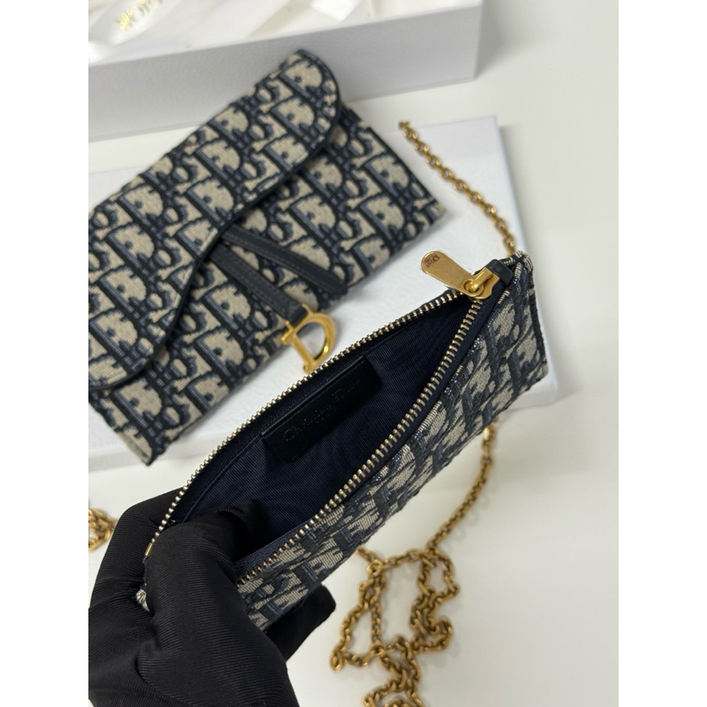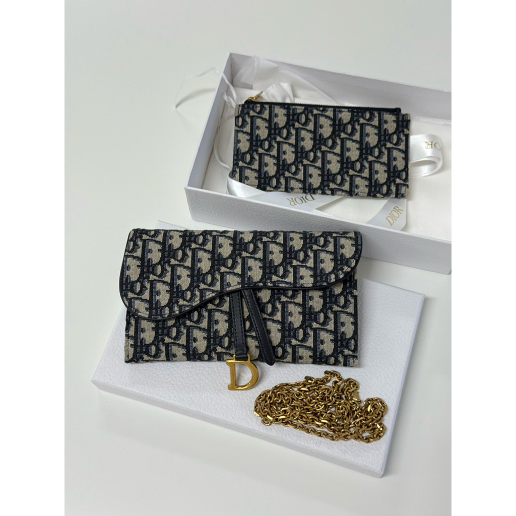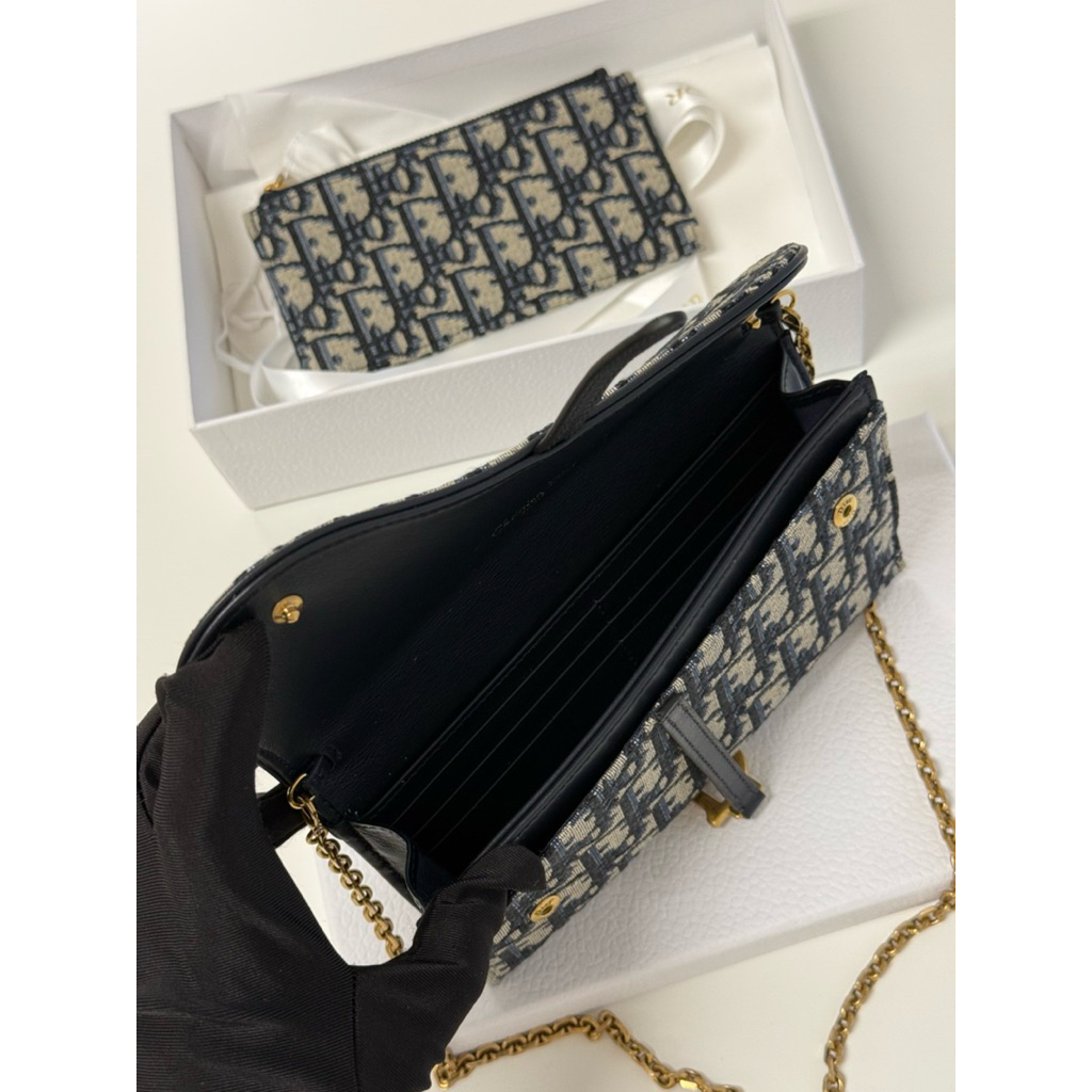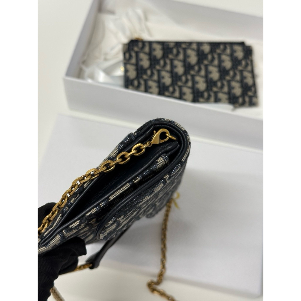 Dior Saddle 深藍老花 馬鞍 Woc 二合一 側背包 鏈帶包