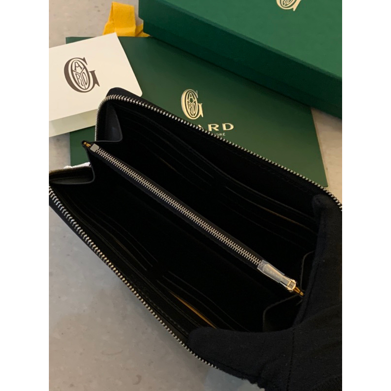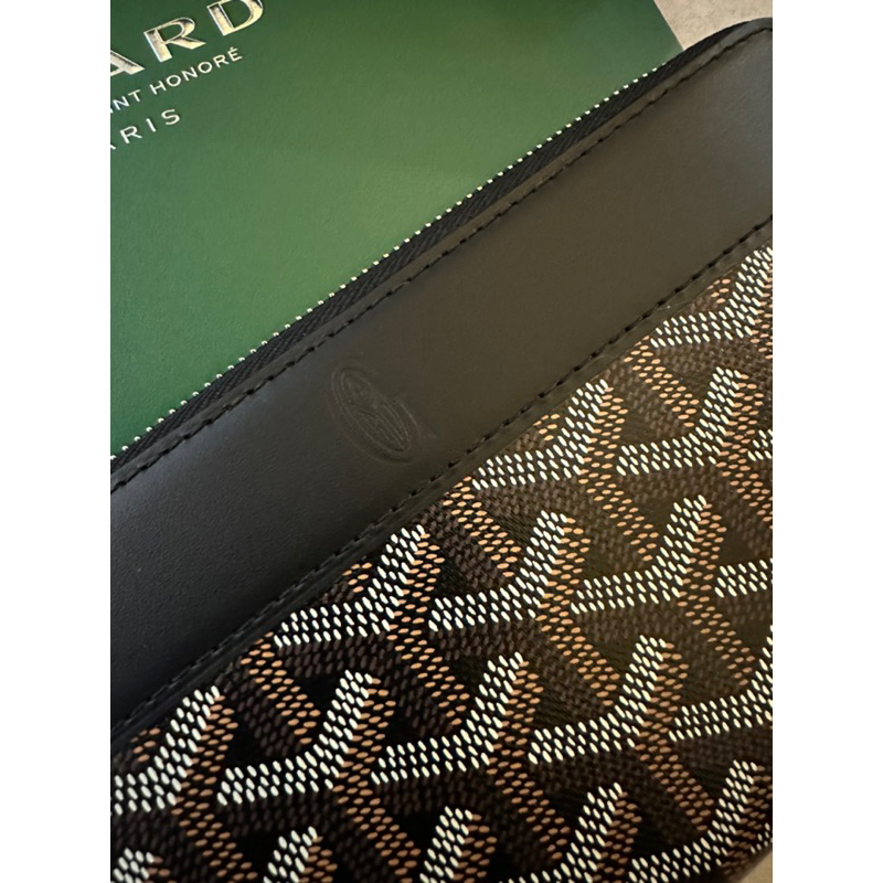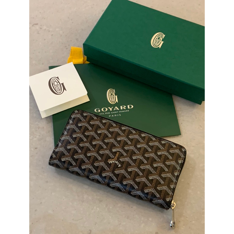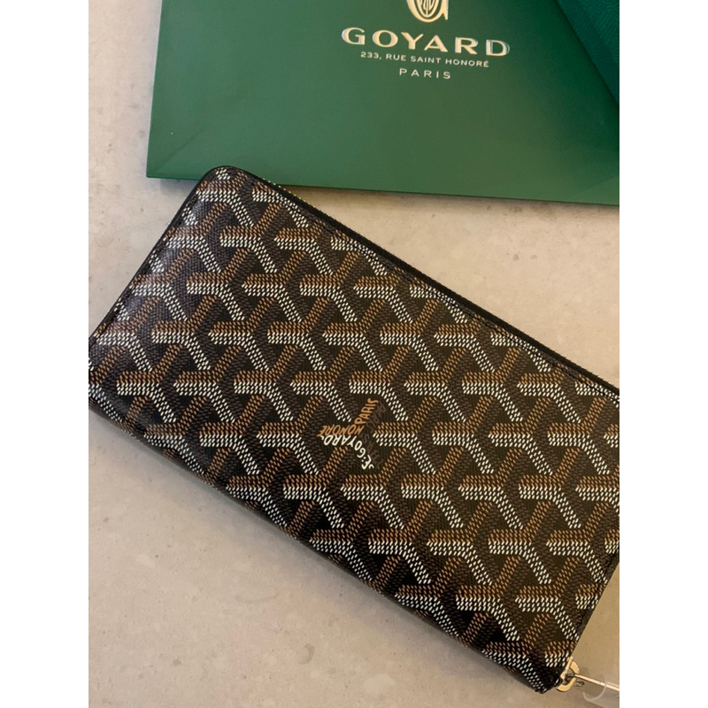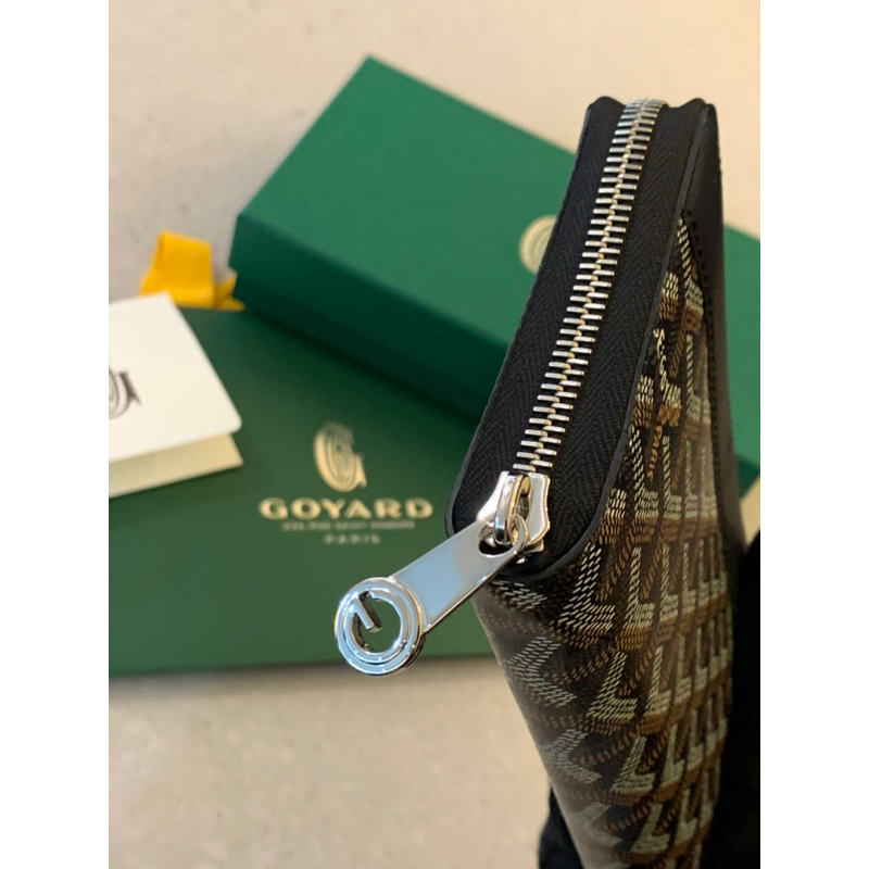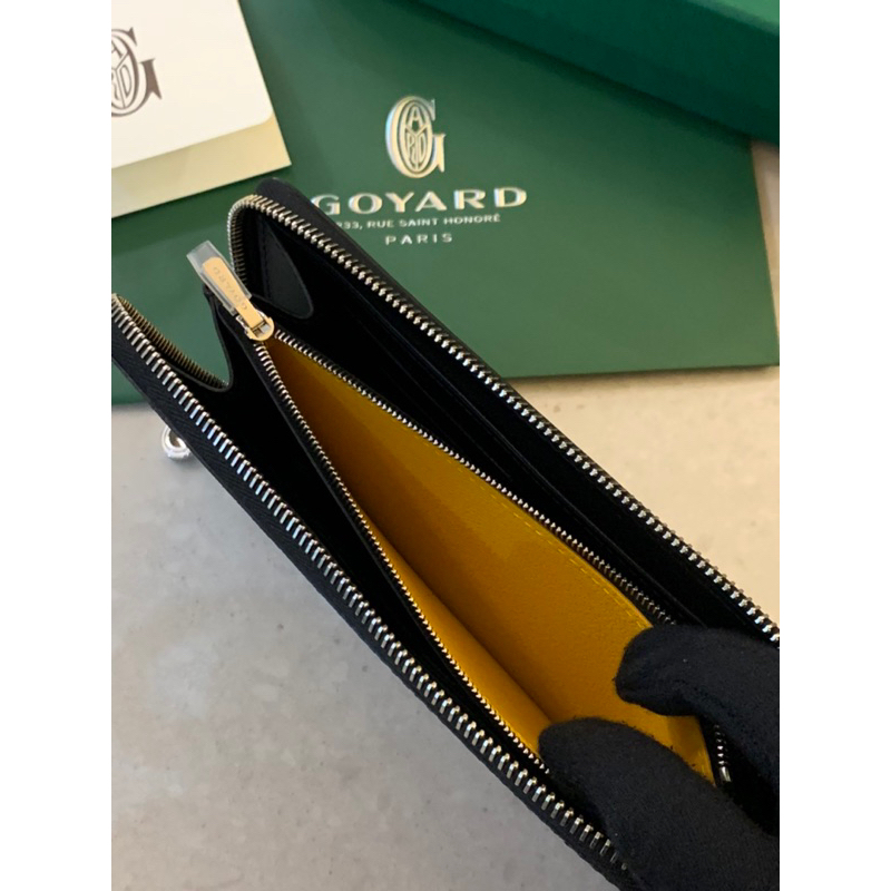 Goyard 經典滿版老花Logo設計 黑棕配色搭配內裏拼接黃色 男生 男款 拉鍊 皮夾 長夾