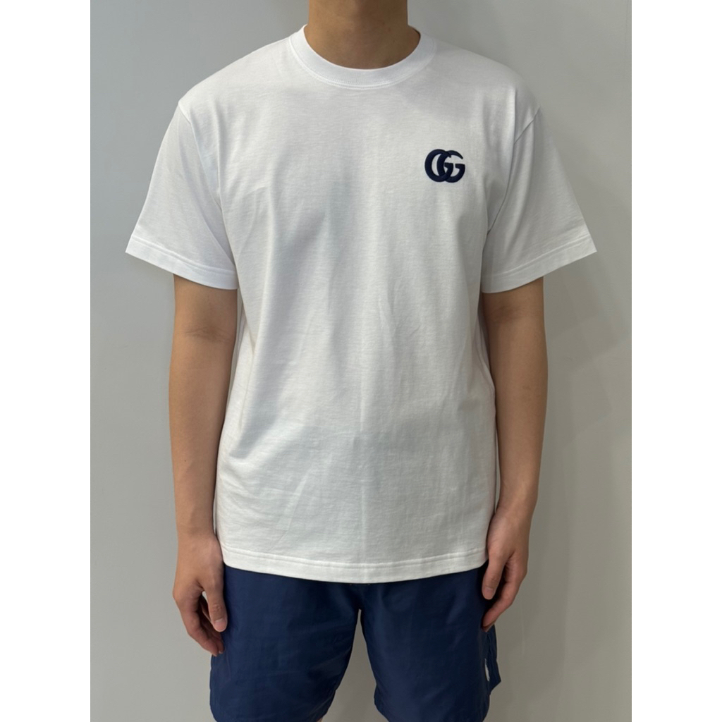 Gucci 白底藍色刺繡小logo設計 素t 短袖T恤上衣