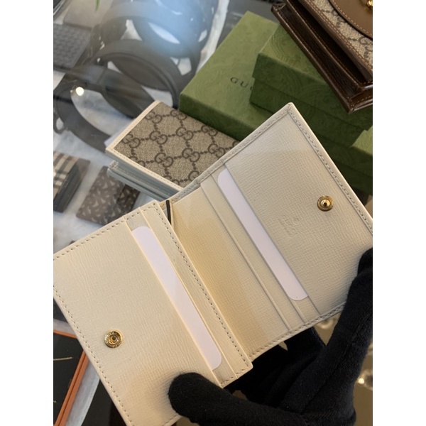 Gucci 經典 馬銜扣1955 白色搭配金扣設計 女生短夾