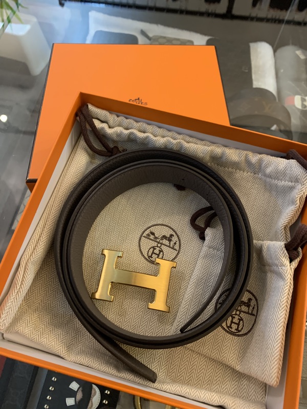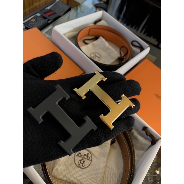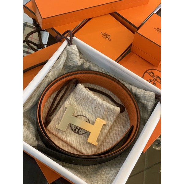 Hermes 愛馬仕經典 金色、銀色頭H logo黑橘、大象灰色 雙面可使用小牛皮皮帶禮盒