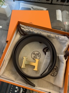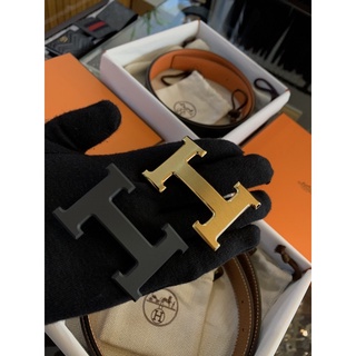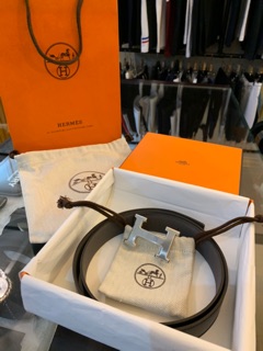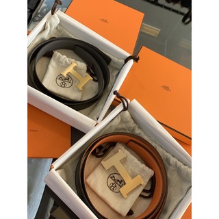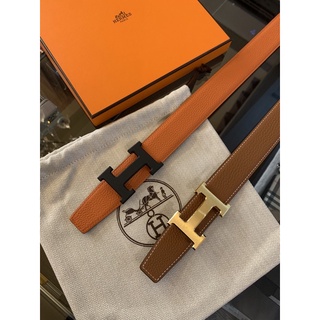 Hermes 愛馬仕經典 霧黑、金、銀頭H字母Logo 墨綠 金棕 深咖 大象灰 可雙面使用 小牛皮皮帶 禮盒
