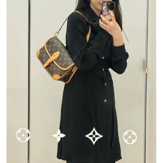 Diane 法棍包袋身的提花寬肩帶,一面有出眾的 Louis Vuitton 標誌,另一面以低調典雅的 Monogram 花卉圖案裝飾。路易威登 Diane 法棍包適合現代女性在各種場合中展現其獨特的時尚品味,為造型增添韻味。