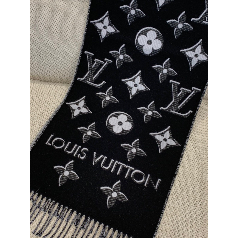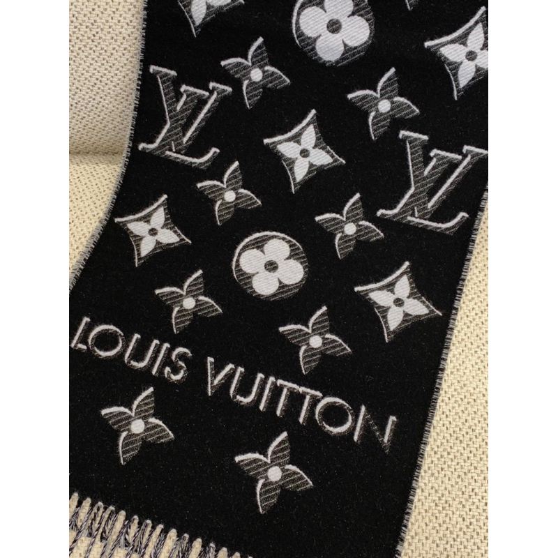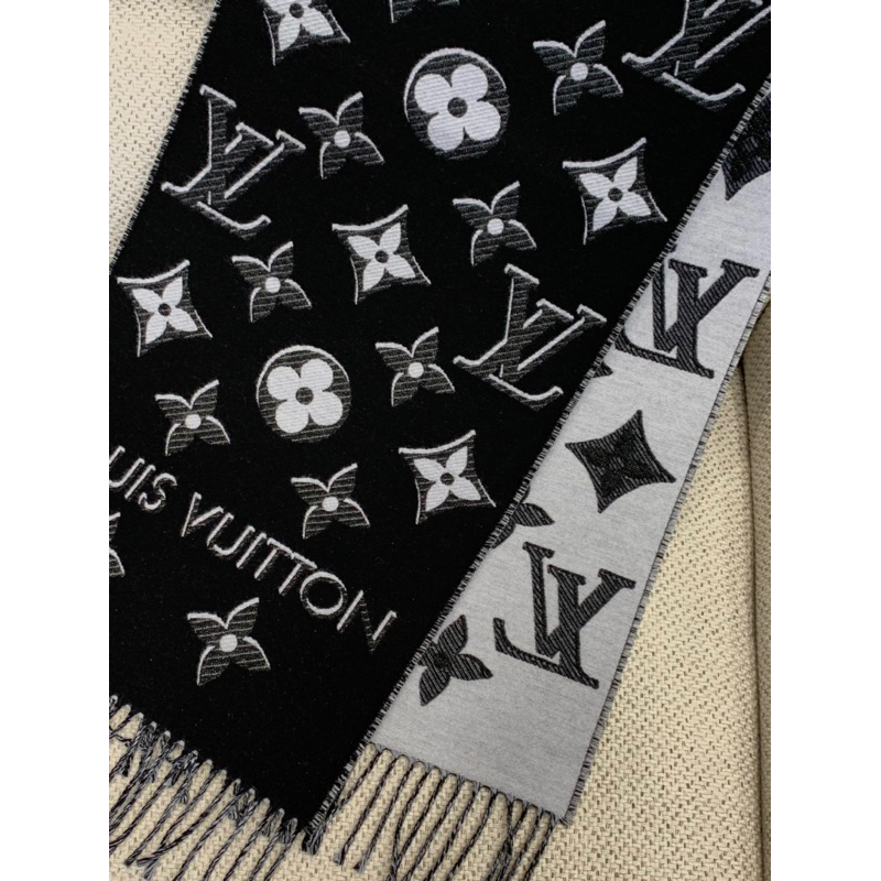 Louis Vuitton LV經典正反雙色搭配滿版Logo設計 雙面可使用 黑灰色 金屬纖維 圍巾