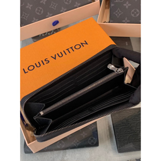 Louis Vuitton LV經典滿版黑色老花Logo設計 男生 男款 拉鍊 皮夾 長夾 現貨