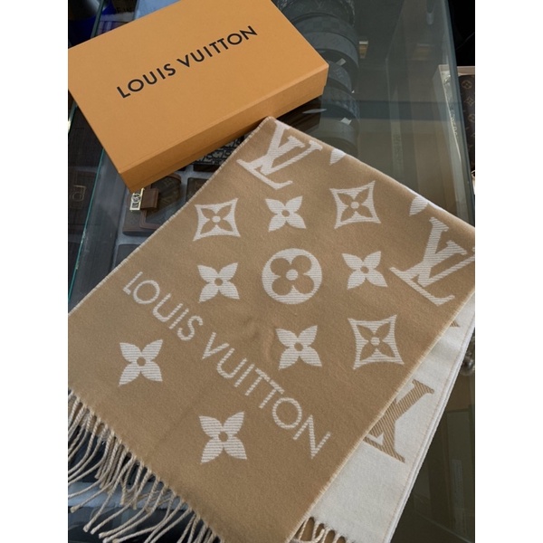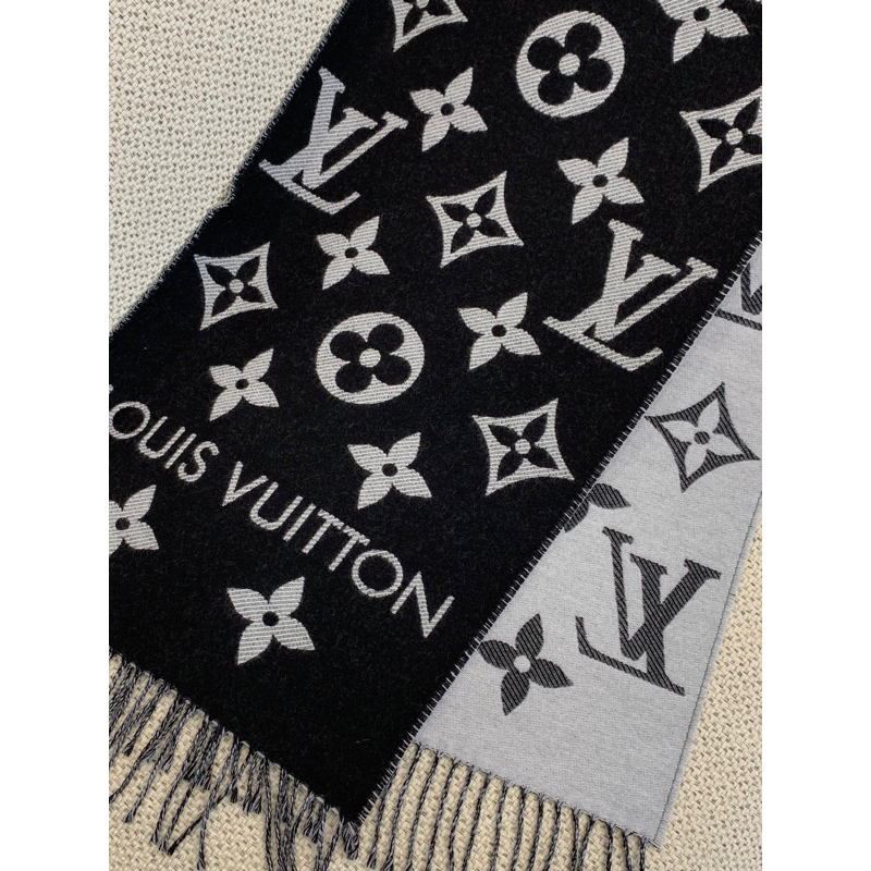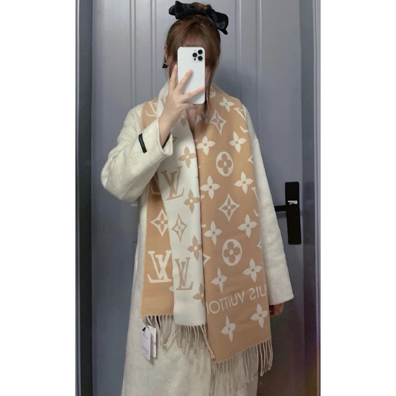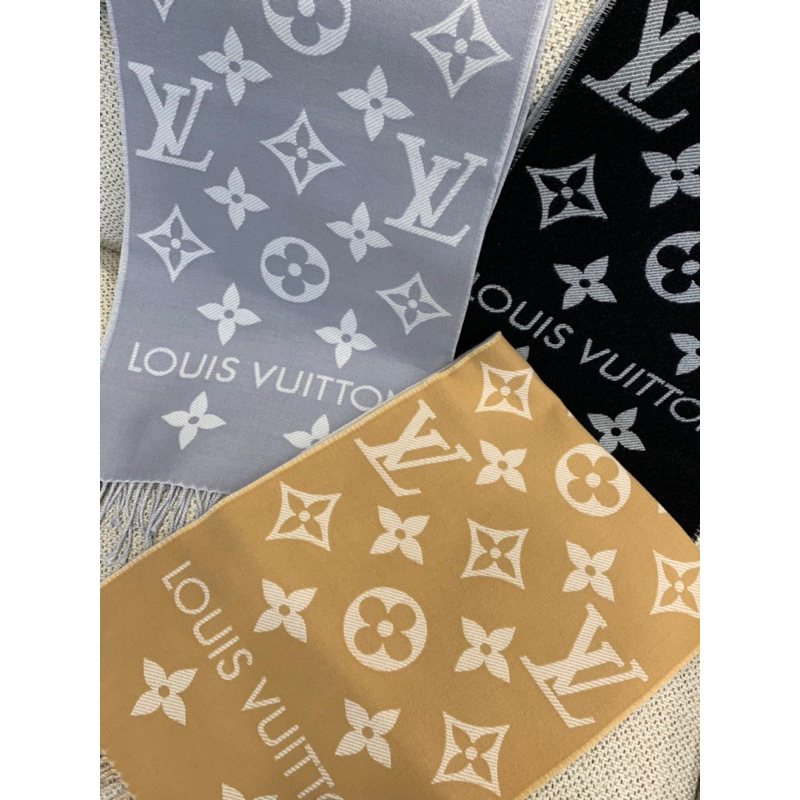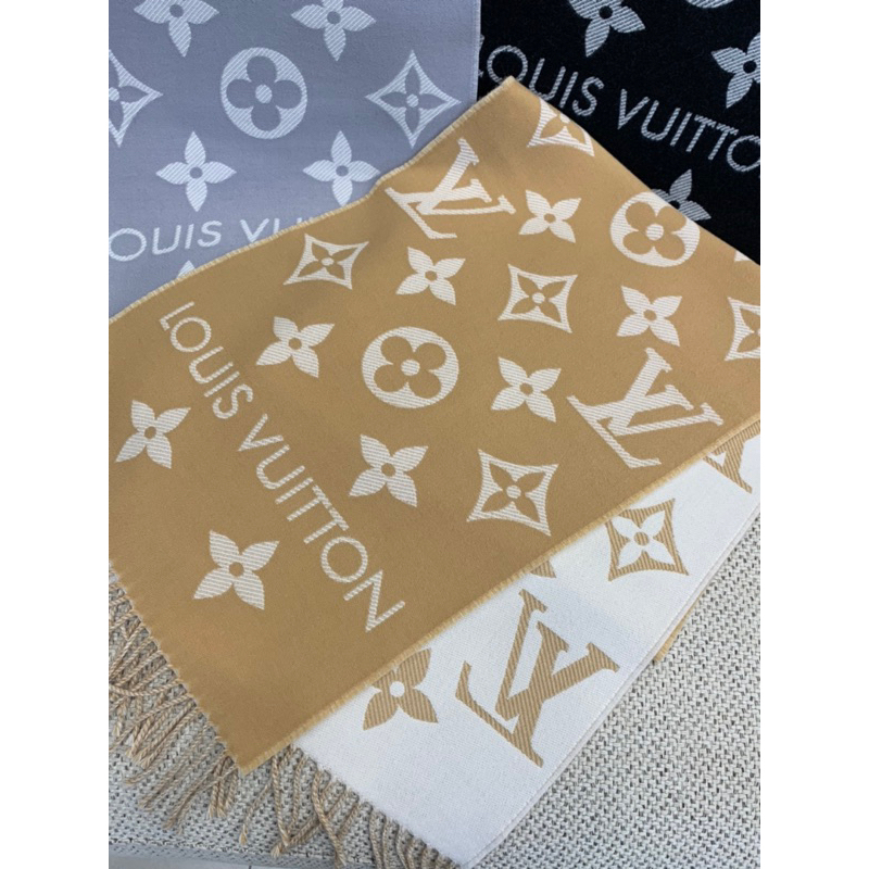 Louis Vuitton LV經典滿版Logo搭配正反雙色設計 雙面可使用 灰色 奶茶色 圍巾